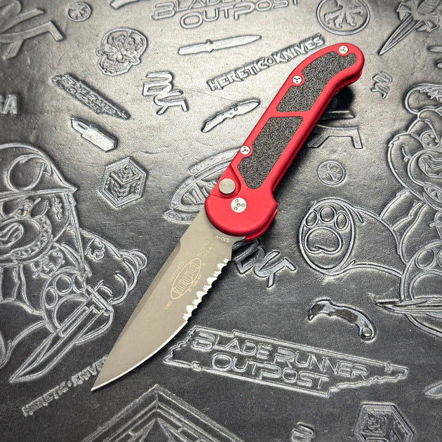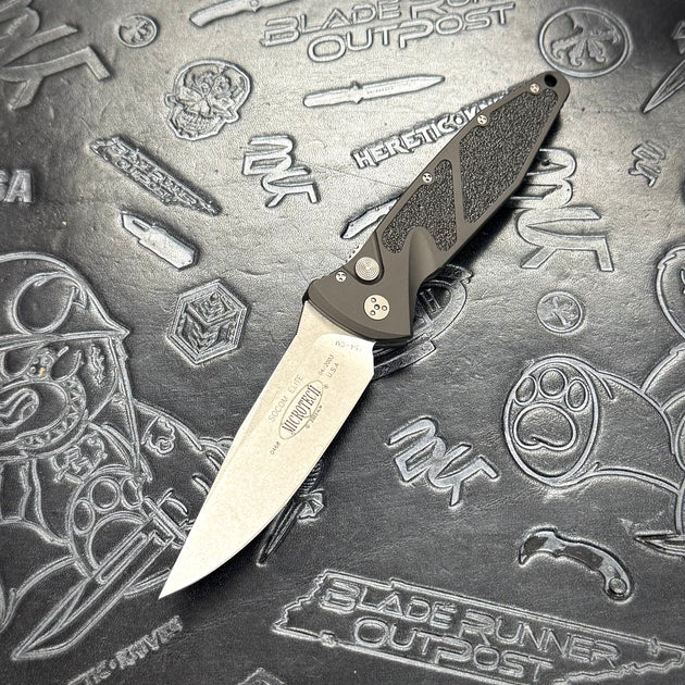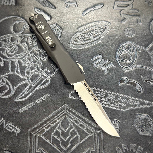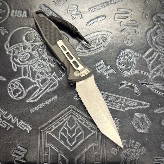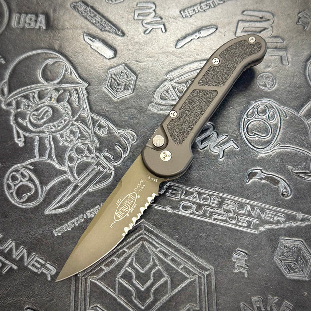 Vintage Microtech QD Scarab - Stonewash Partial Serrated S30V - Black Aluminum w/ Grip Tape inlays - 07/2003 Build *PRE-OWNED*