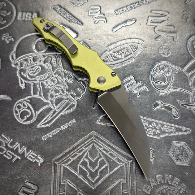 Heretic Manticore X - Black Aluminum w/ Green Splash - Double Edge DLC S35VN - H032-6A-GS Pre-Owned