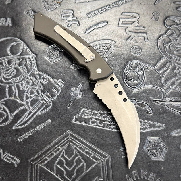 Heretic Colossus Double Edge Custom - High Sheen DLC Elmax - Aluminum Chassis w/ Flamed Titanium inlays - DLC Button, Clip & Hardware - S/N: 016 *PRE-OWNED*