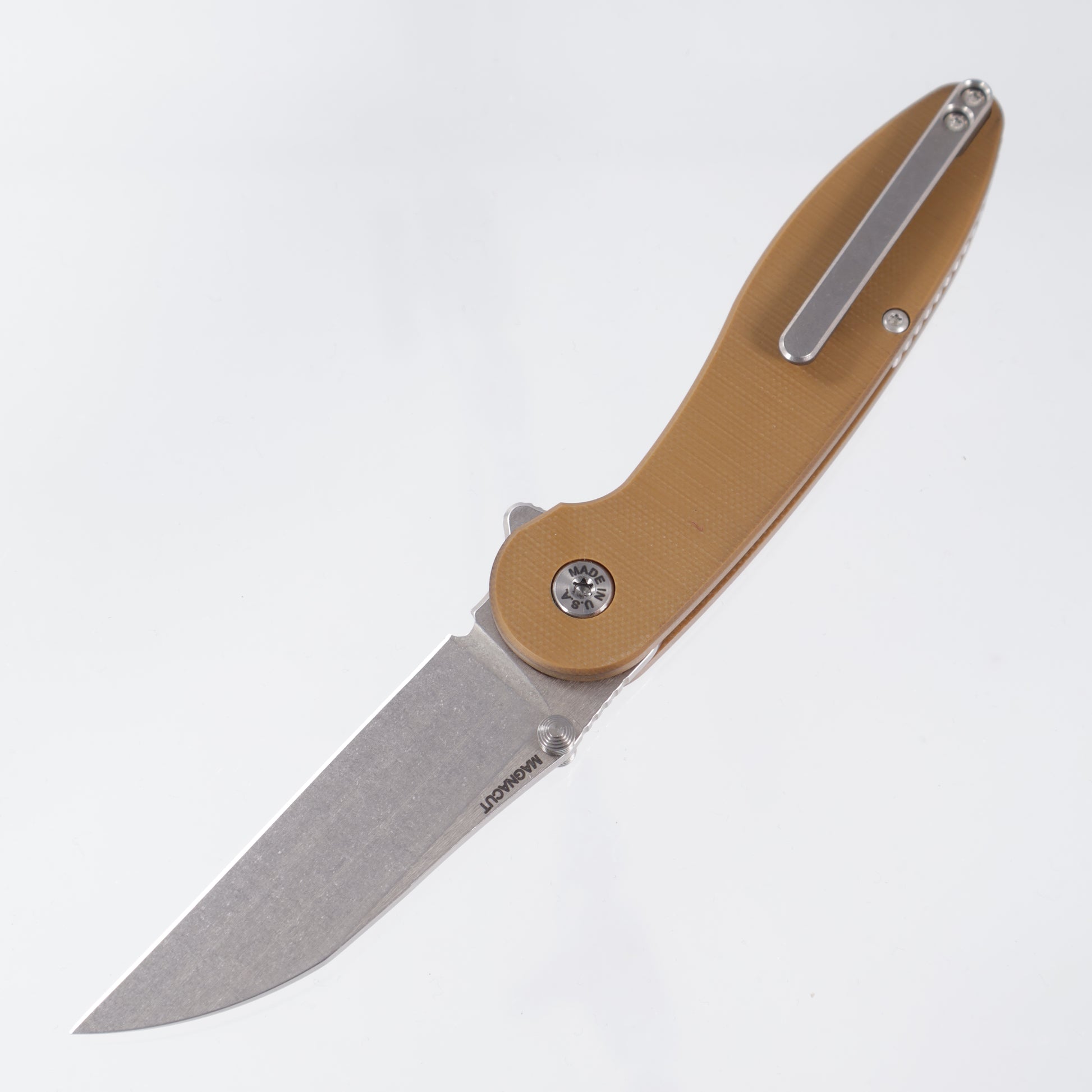 American Bladeworks Model 1 V7 - Brown G10 - Stonewash Magnacut Wharncliffe