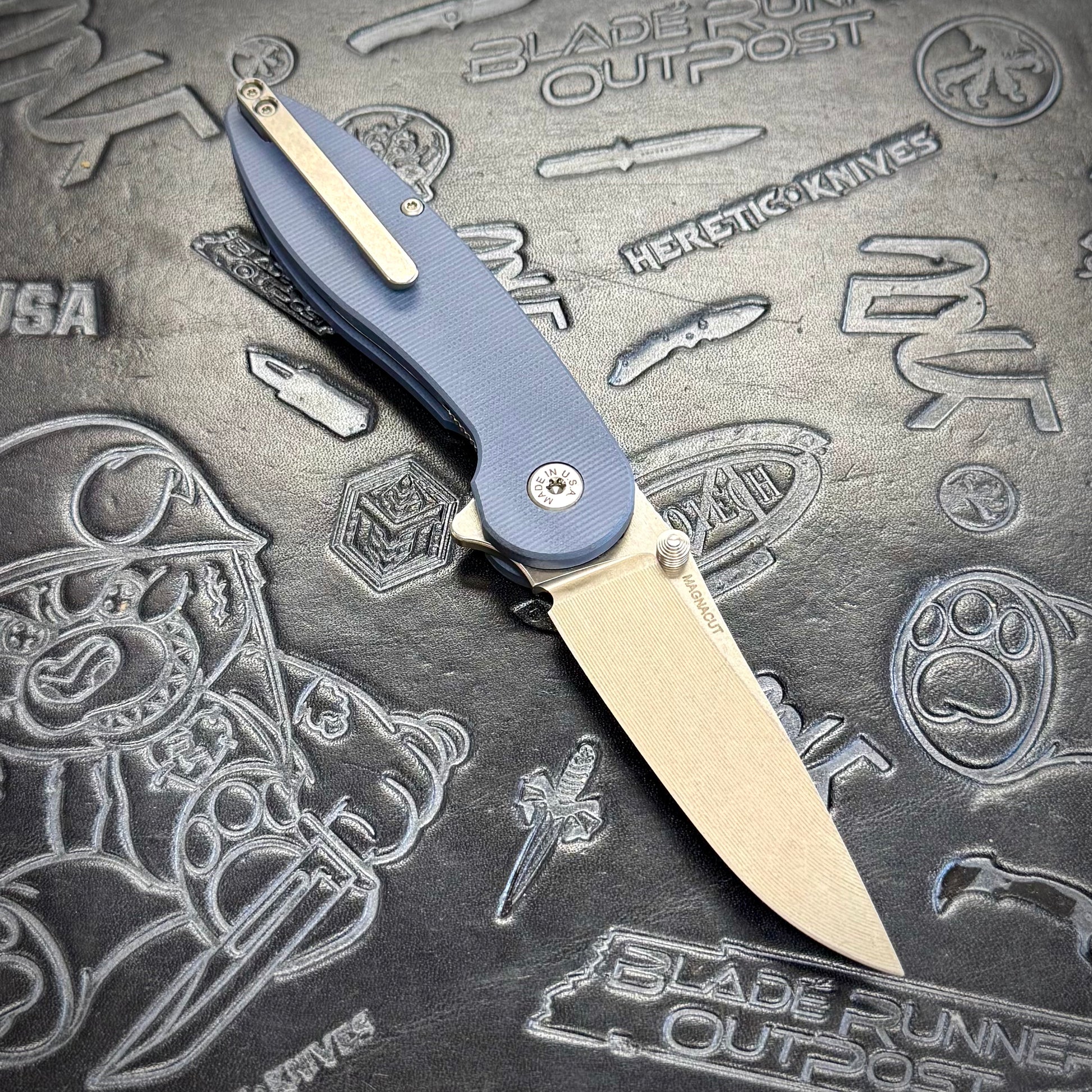 American Blade Works Model 1 V7 featuring a Magnacut blade & slate G10 handle scales!