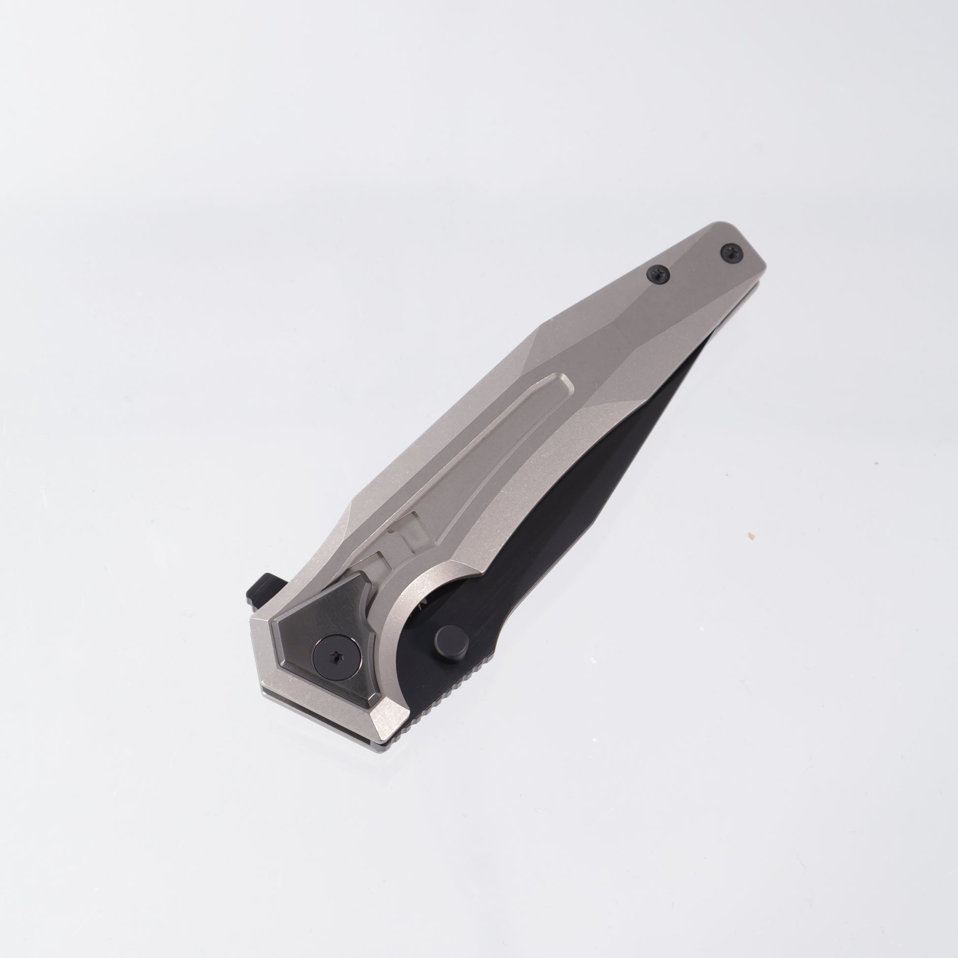 Arcane Design The CREATURE - Silver Screen Edition - Tanto Satin DLC 20CV - Titanium w/ Polished Zirc Collars, Clip, & Backspacer