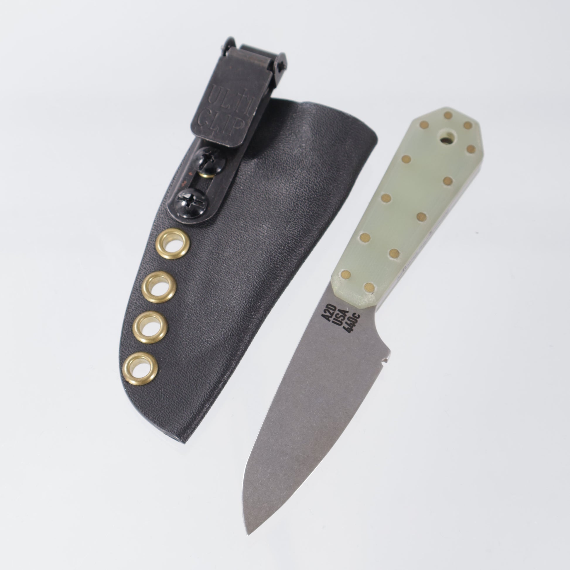 1 of only 4 Attn2Detail Hummingbird Prorotypes made! This model features Jade G10 & a satin beveled 440C chisel ground blade! Black pocket carry sheath w/ Ulti-Clip