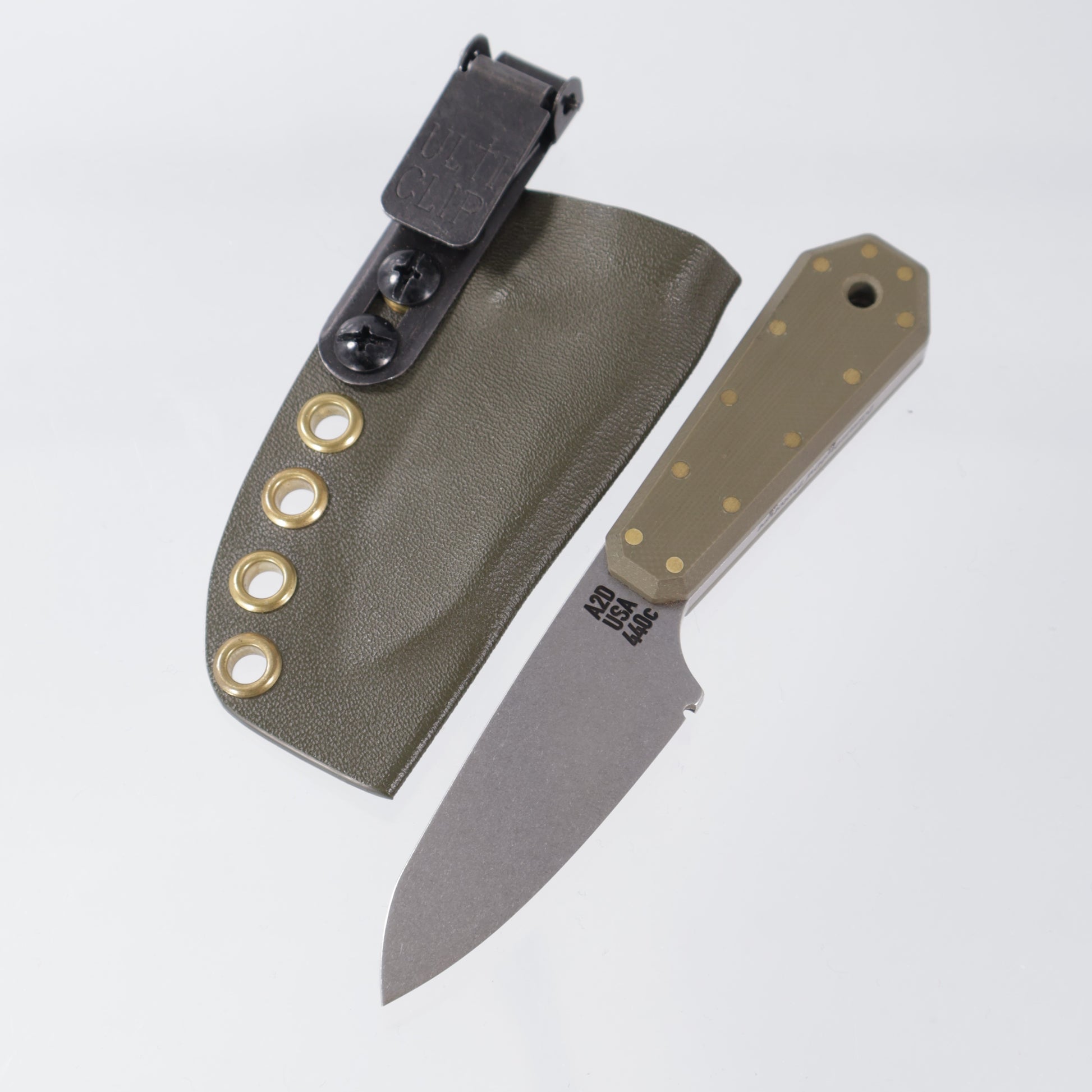 1 of only 4 Attn2Detail Hummingbird Prorotypes made! This model features OD Green G10 & a satin beveled 440C chisel ground blade! OD Green pocket carry sheath w/ Ulti-Clip