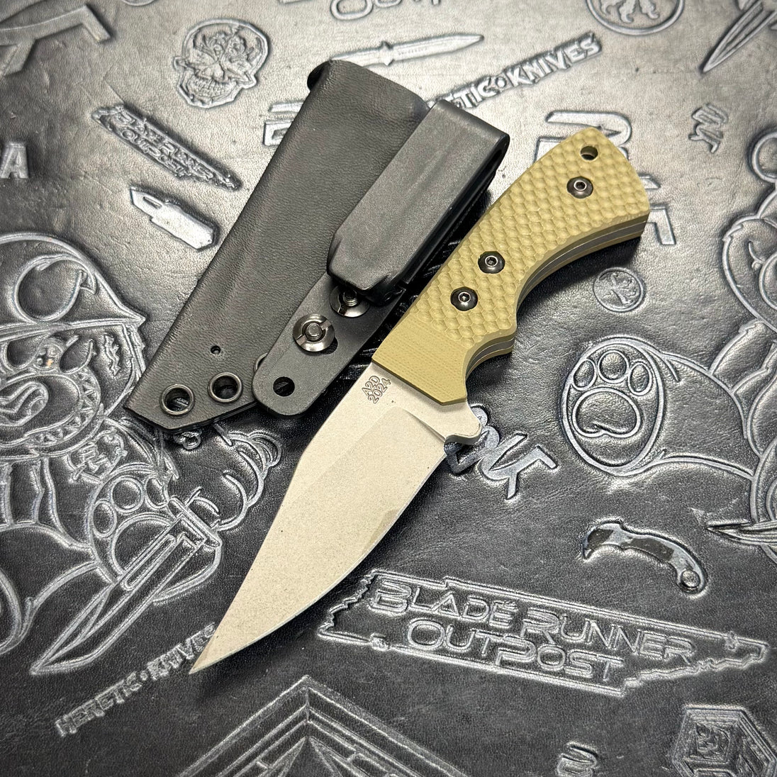 Attn2Detail Lil Pecker fixed blade featuring double divot OD Green G10 scales & a mini Bowie Stonewash finished S35VN blade! Includes Kydex Sheath.