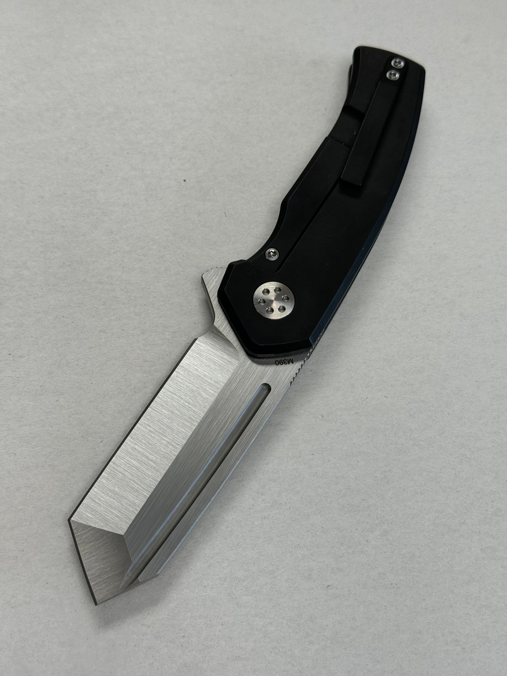 The Mini Warrior folder is based off of the Warrior and Mini Warrior fixed blade design - but perfectly sized for your pocket. This design features a 3.25-inch M390 steel blade with PVD coating, "Blue Frost " fat carbon scales and titanium hardware. You'll love the smooth flipper action riding on ceramic bearings.