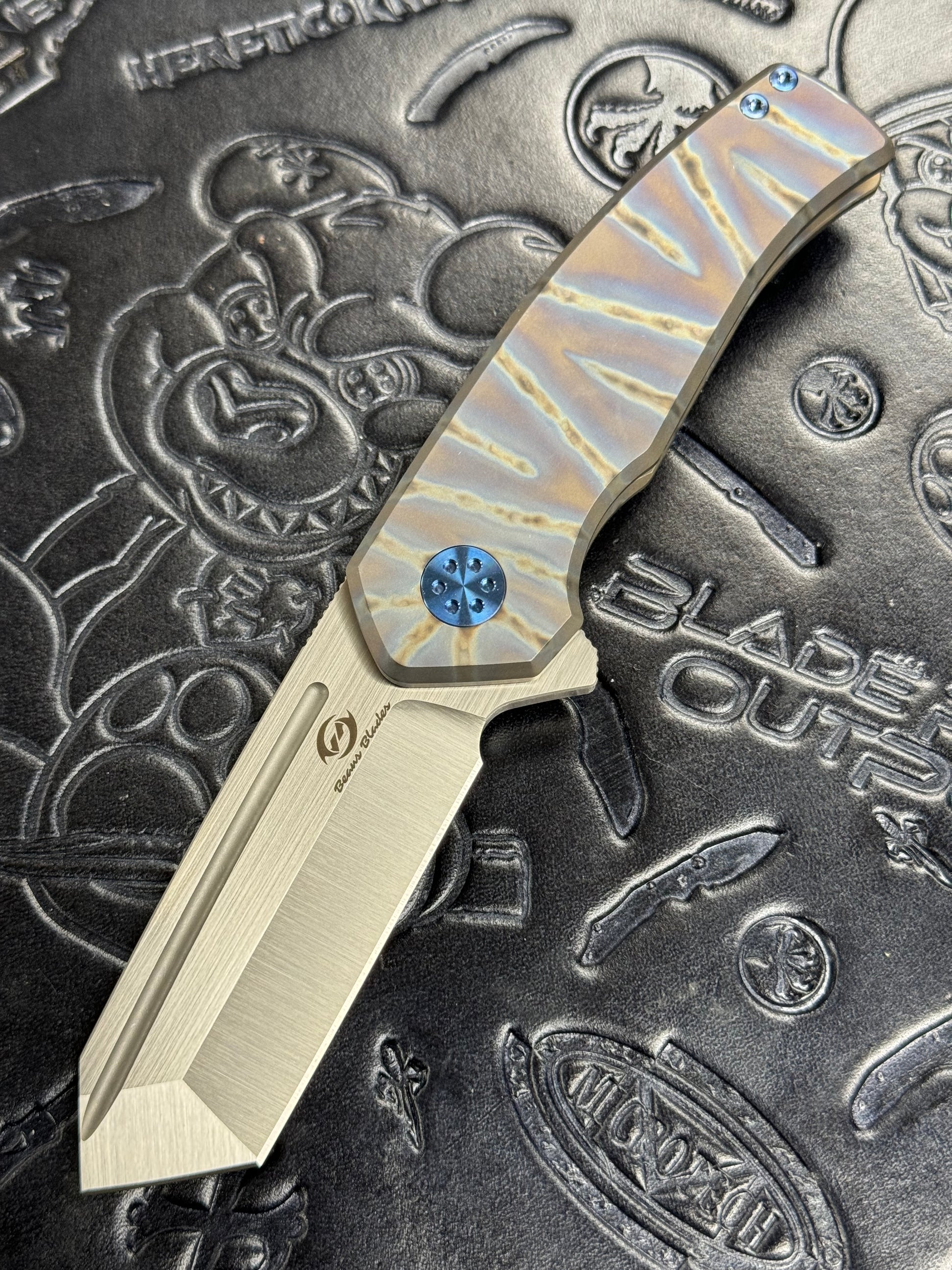 Beans Blade Mini Warrior Folder - Flamed Full Titanium Scale, Satin M390