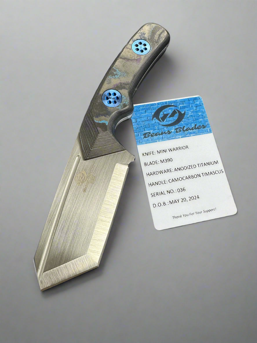 Beans Blades Fixed Blade Mini Warrior Tanto M390 Camo Carbon Timascus