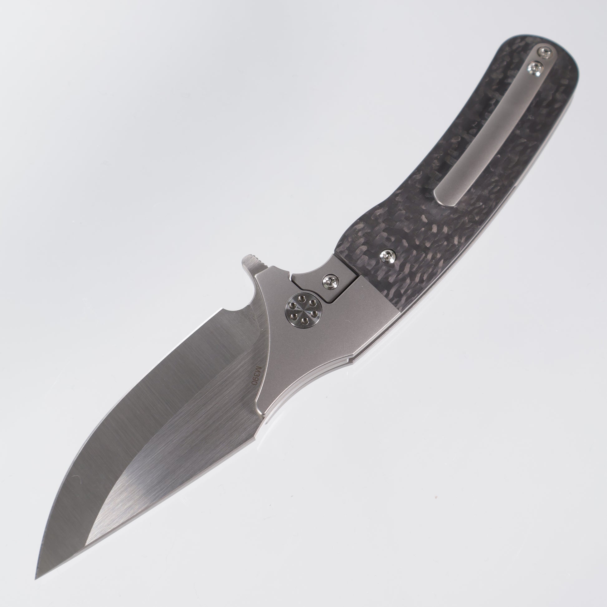 Beans Blades Javelin Folder featuring a Beadblast titanium frame, carbon fiber twill inlays & a satin M390 blade!