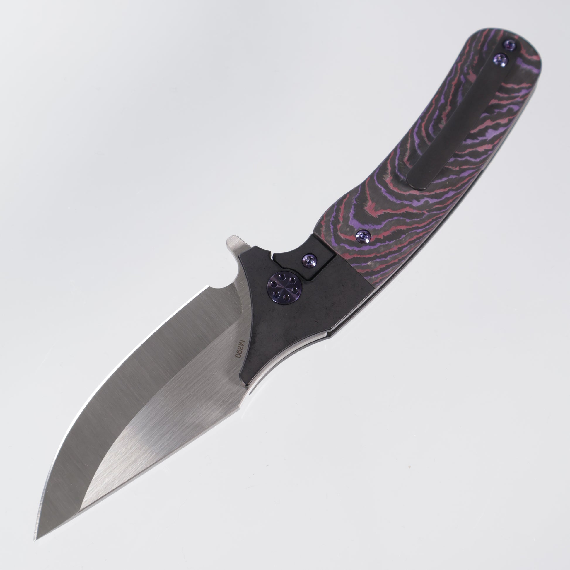 Beans Blades Javelin Folder - Black - Black PVD Titanium - Crosscut Purple Haze Fat Carbon - Satin M390