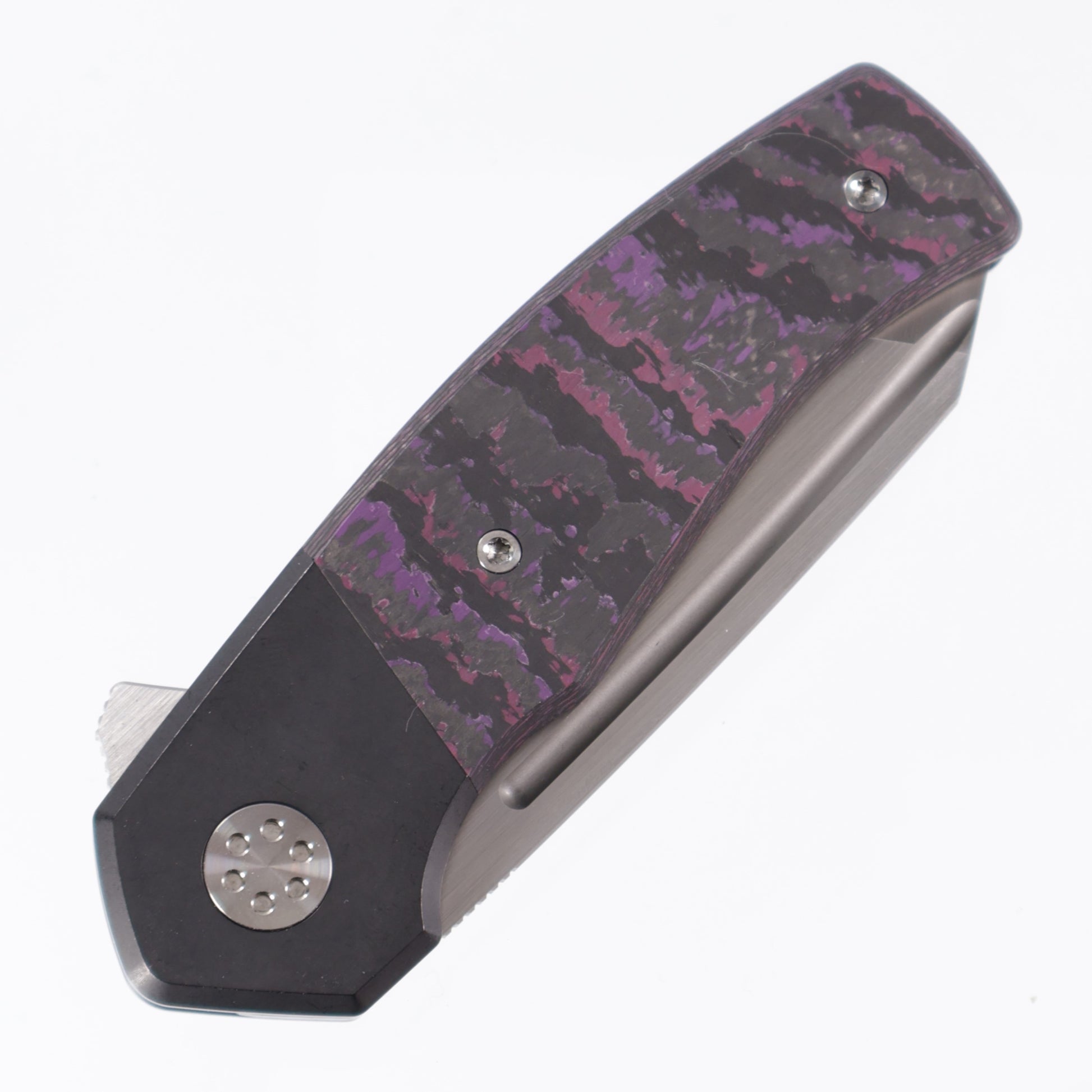 Beans Blades Mini Warrior Folder - Purple Haze Fat Carbon, Titanium Handle, M390 Satin