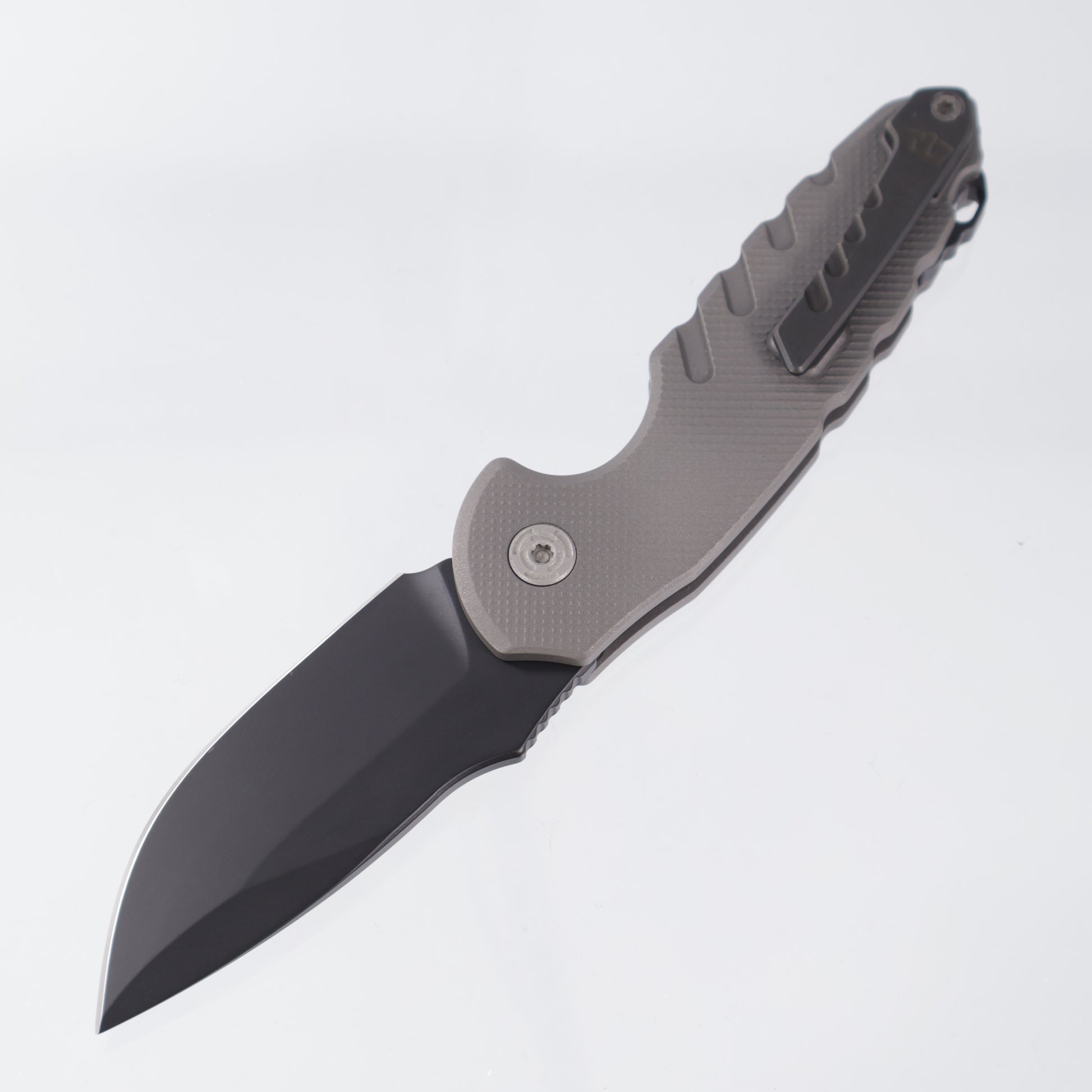 Blackside Customs Bad Idea Auto - Grey Matter Titanium Handle - Triple Black Magnacut - Titanium Hardware & Clip - BSC-F1