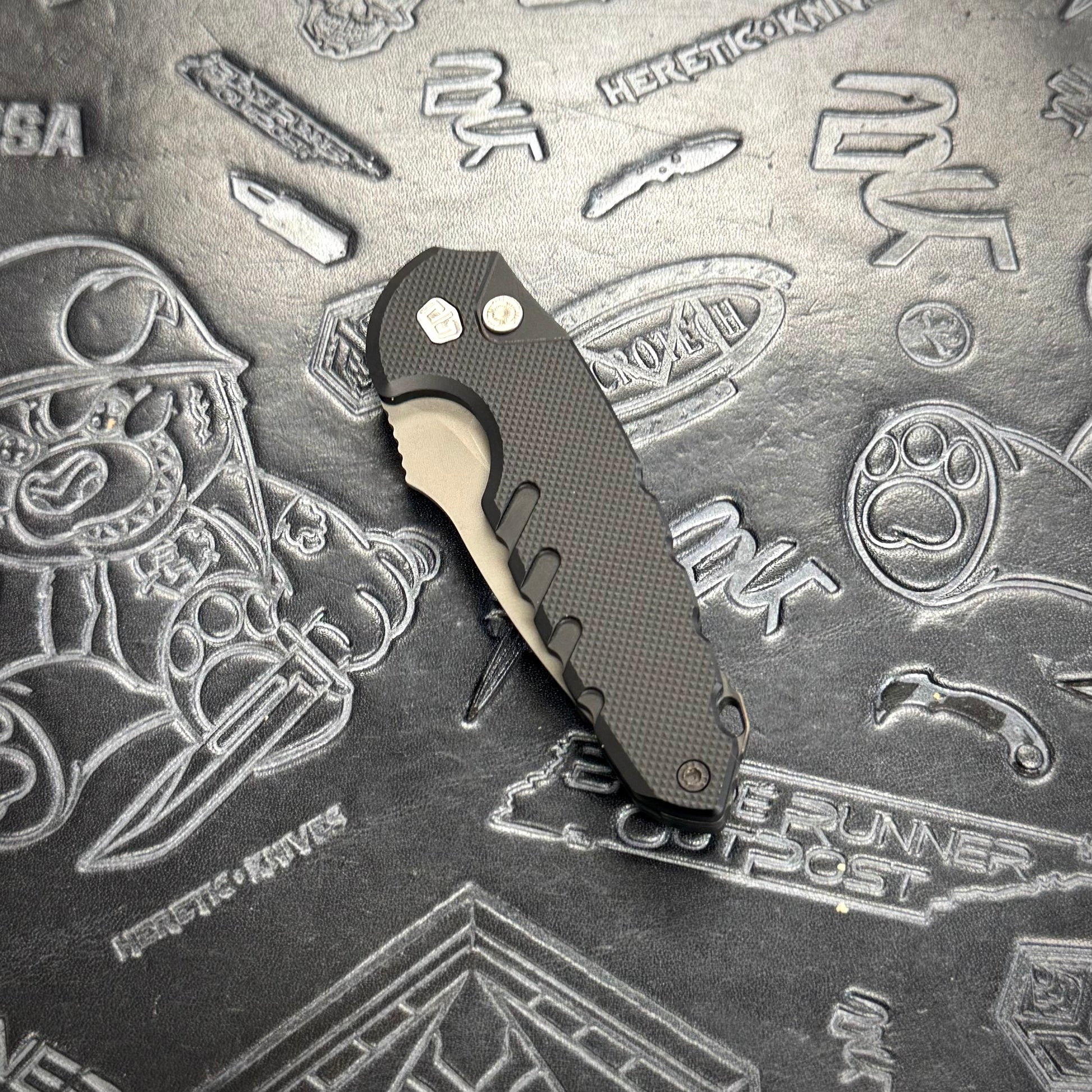 Prototype Blackside Customs Bad Idea auto featuring Type 3 Hardcoated 6061 Alumimum handles, titanium hardware & a Grey Matter finish PSB27 blade!