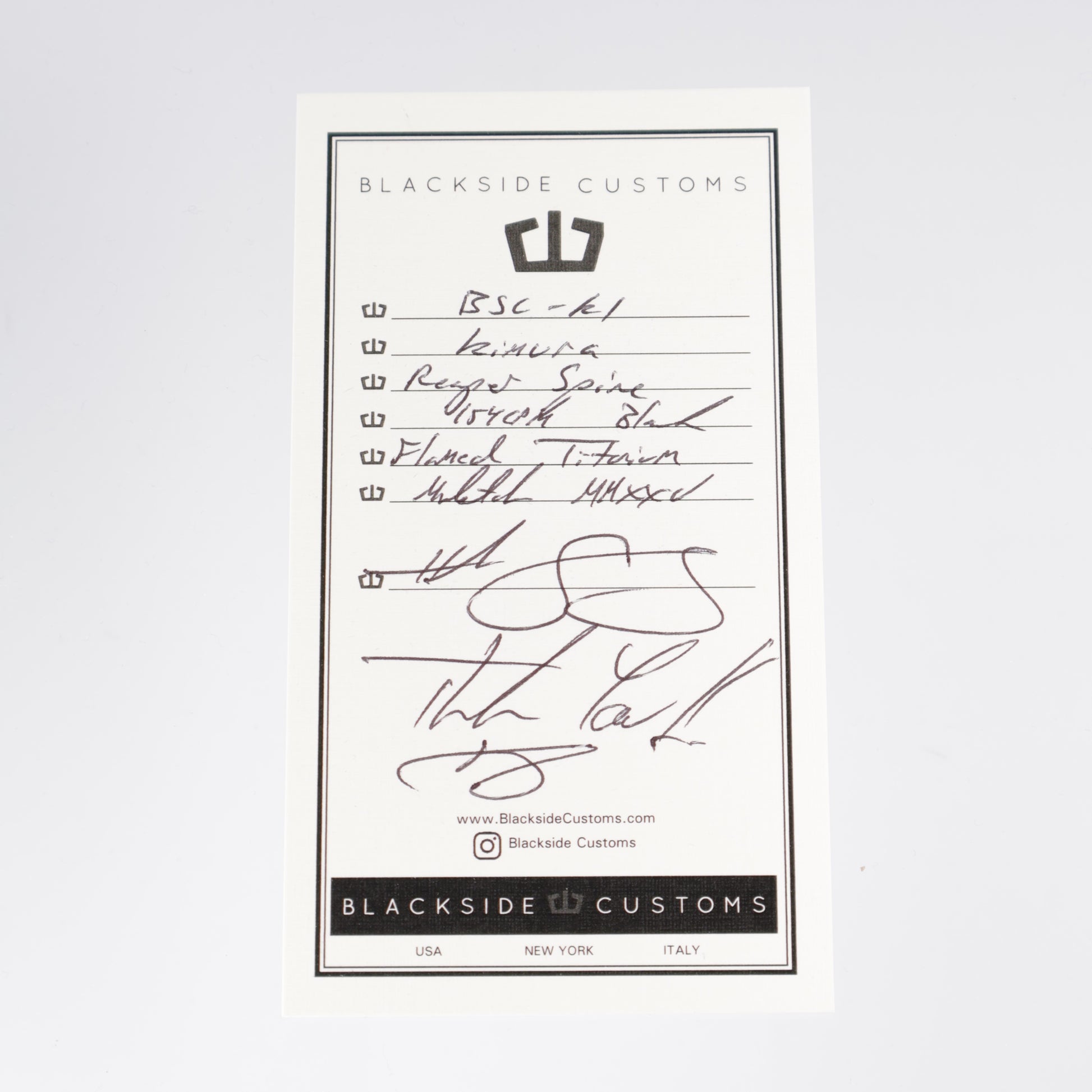 Blackside Customs - Kimura - Black Coated 154CM w/ Reaper Spine - Flamed TItanium