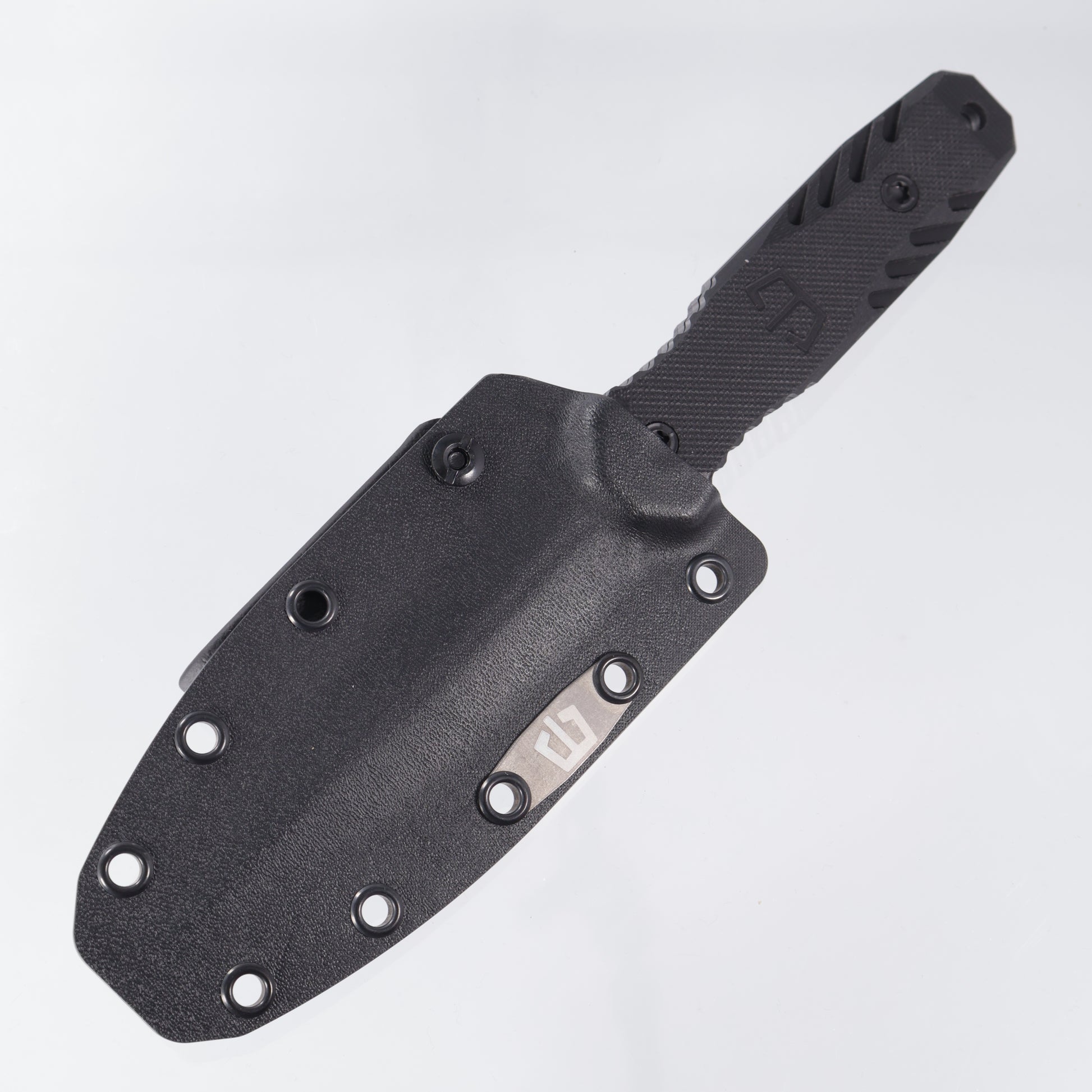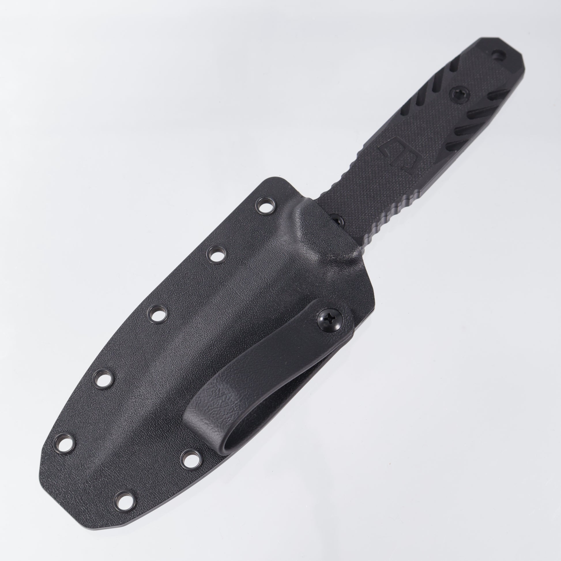 The Blackside Customs Phase 7 SDM is a premium fixed-blade dagger that lives up to its name — Size Does Matter. It combines reach, strength, and refined handling in one bold design. A milled fuller reduces weight while adding structural integrity and signature style. The symmetrical handles provide a confident, ambidextrous grip. Custom milled hardware, jimping along the spine, and a lanyard hole add both utility and aesthetic refinement. Each dagger includes a precision-molded Kydex sheath with the Blackside logo for secure retention and quick deployment.