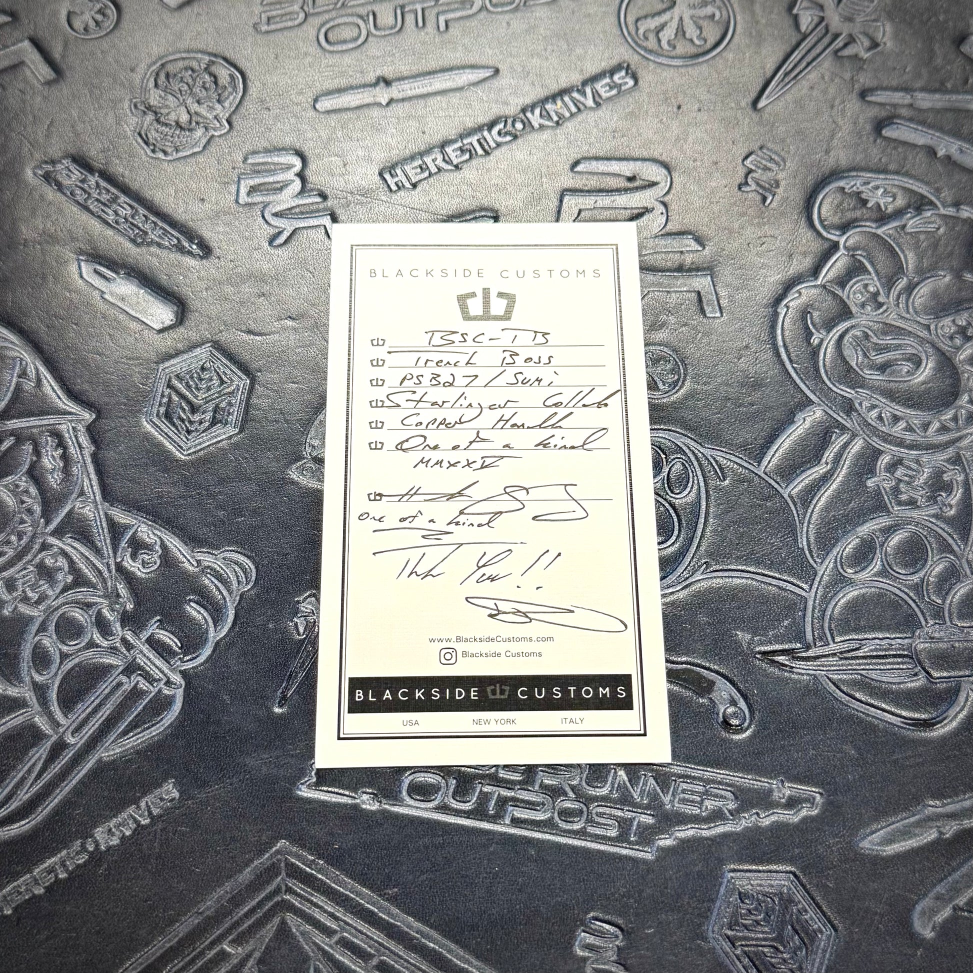 Blackside Customs x Starlingear Trench Boss featuring a Sumi Finish Magnacut blade & Starlingear customized copper scales! One of the craziest one of a kind pieces from BSC x Starlingear so far!