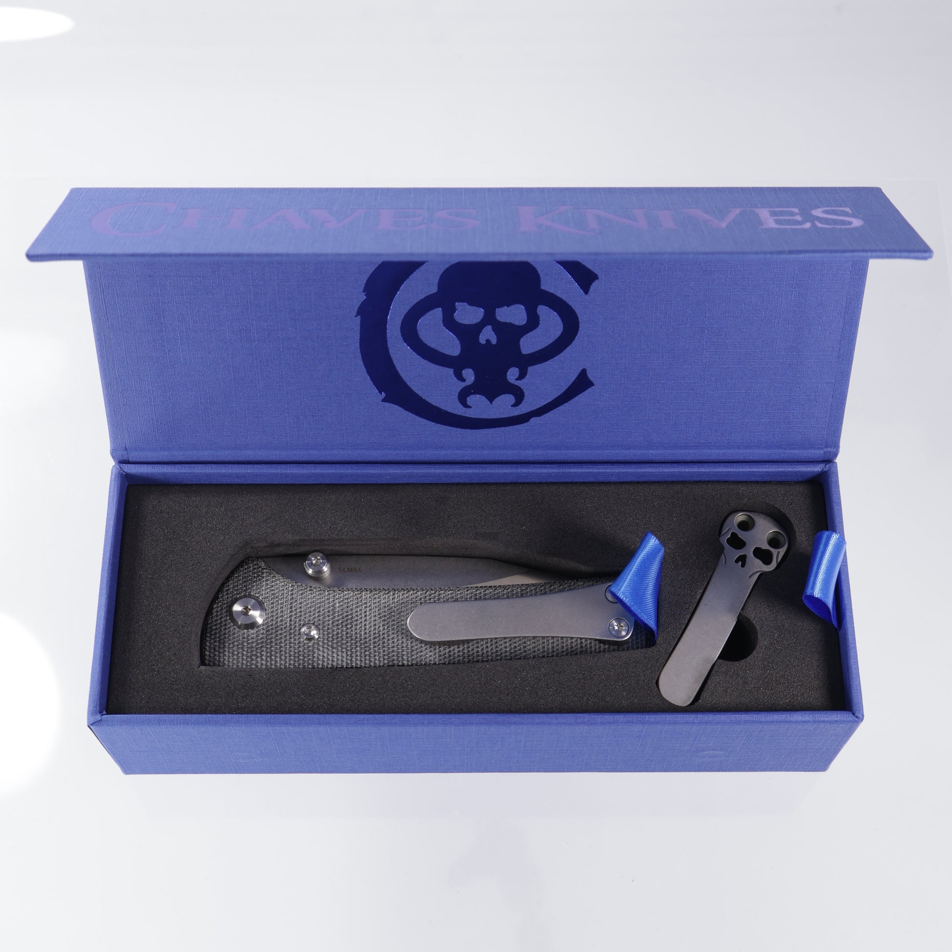 The Chaves Knives Blue Label series brings Ramon Chaves’ signature designs and rugged performance to a more accessible price point without compromising on quality. Built around a stainless frame (rather than titanium) and paired with grippy micarta or aluminum scales, these models deliver the feel and ergonomics Chaves is known for. The Blue Label is made to be carried, used, and customized, all while delivering real Chaves DNA at a more approachable value.