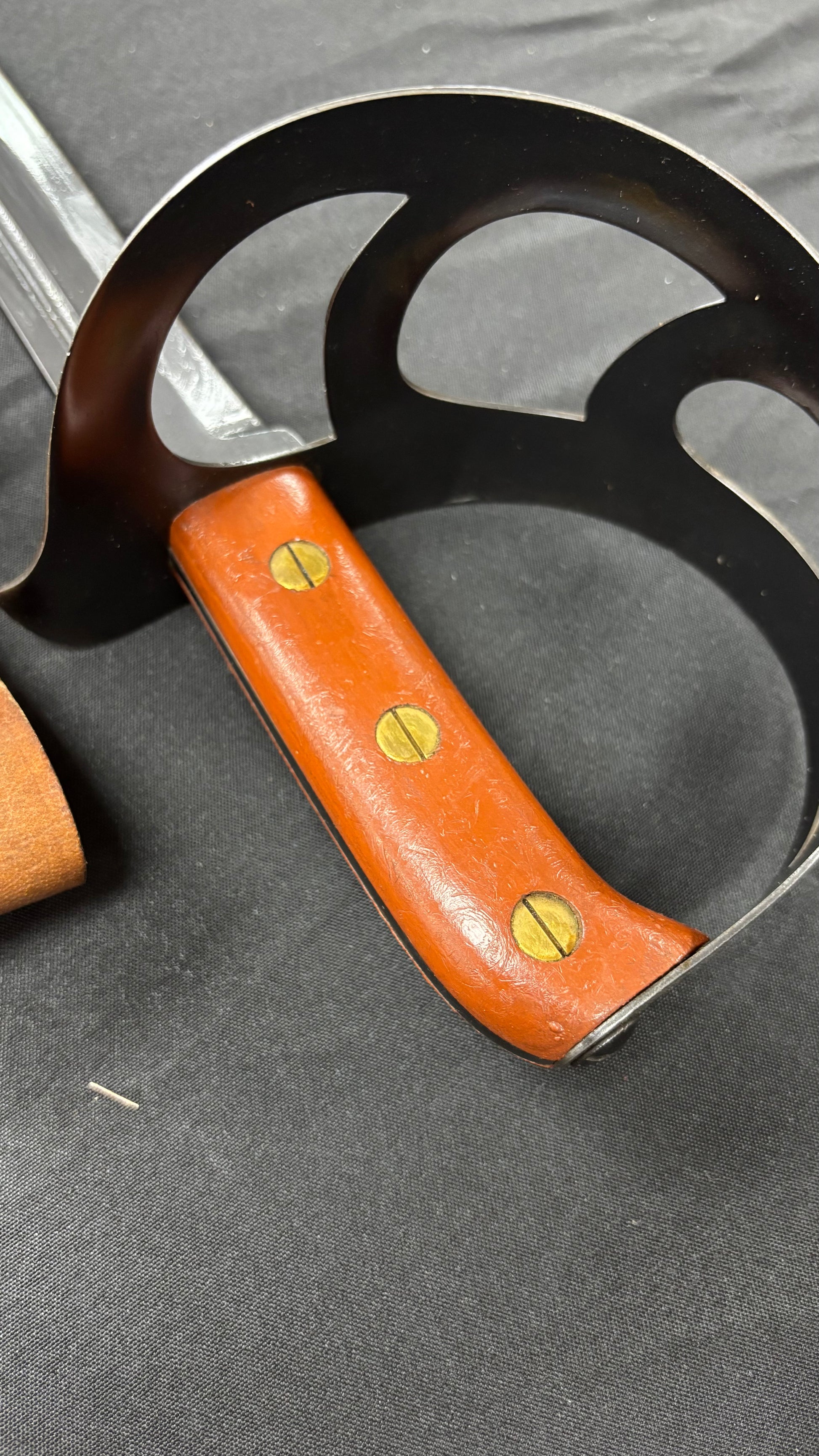 Notes from LT's Team: Very nice 31" 1917 Cutlass. Very few made. 11 with OG brown leather scabbard. Painted wood grip. Perfect condition