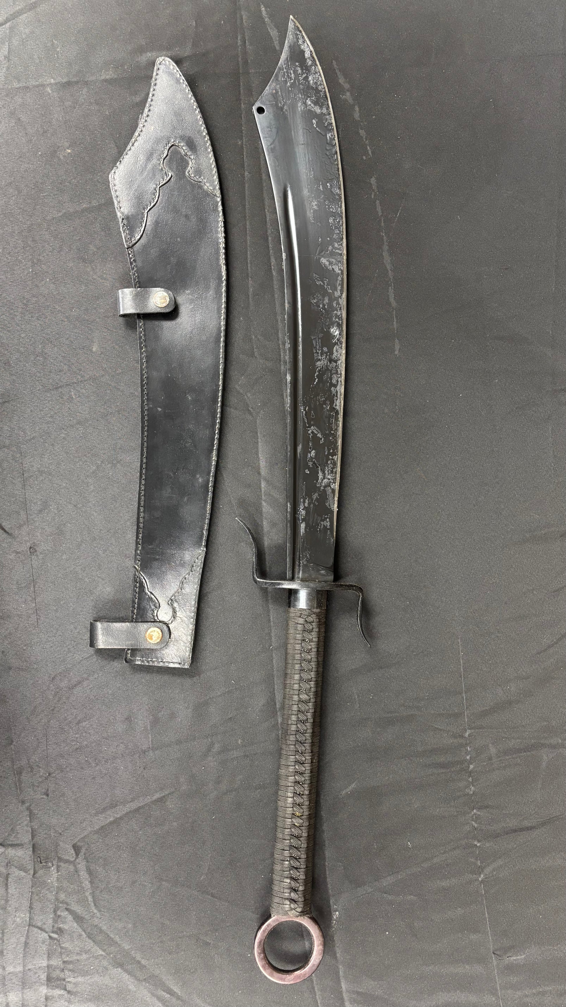 There are few swords in the world that are more effective than the two-handed Cold Steel Chinese War Sword. Over the years we have tested this sword time and time again, and we've consistently cut bigger, tougher and more challenging targets. It remains one of the most popular swords in our line up, and when you see the tests, it's easy to see why! The Chinese War Swords cord wrapped grip, "S" shaped guard, and steel ring shaped pommel all work in concert to make it a well-balanced sword that's unbelievably fast and agile despite its formidable size. Each sword is hand sharpened and is protected by an attractive heavy leather scabbard.