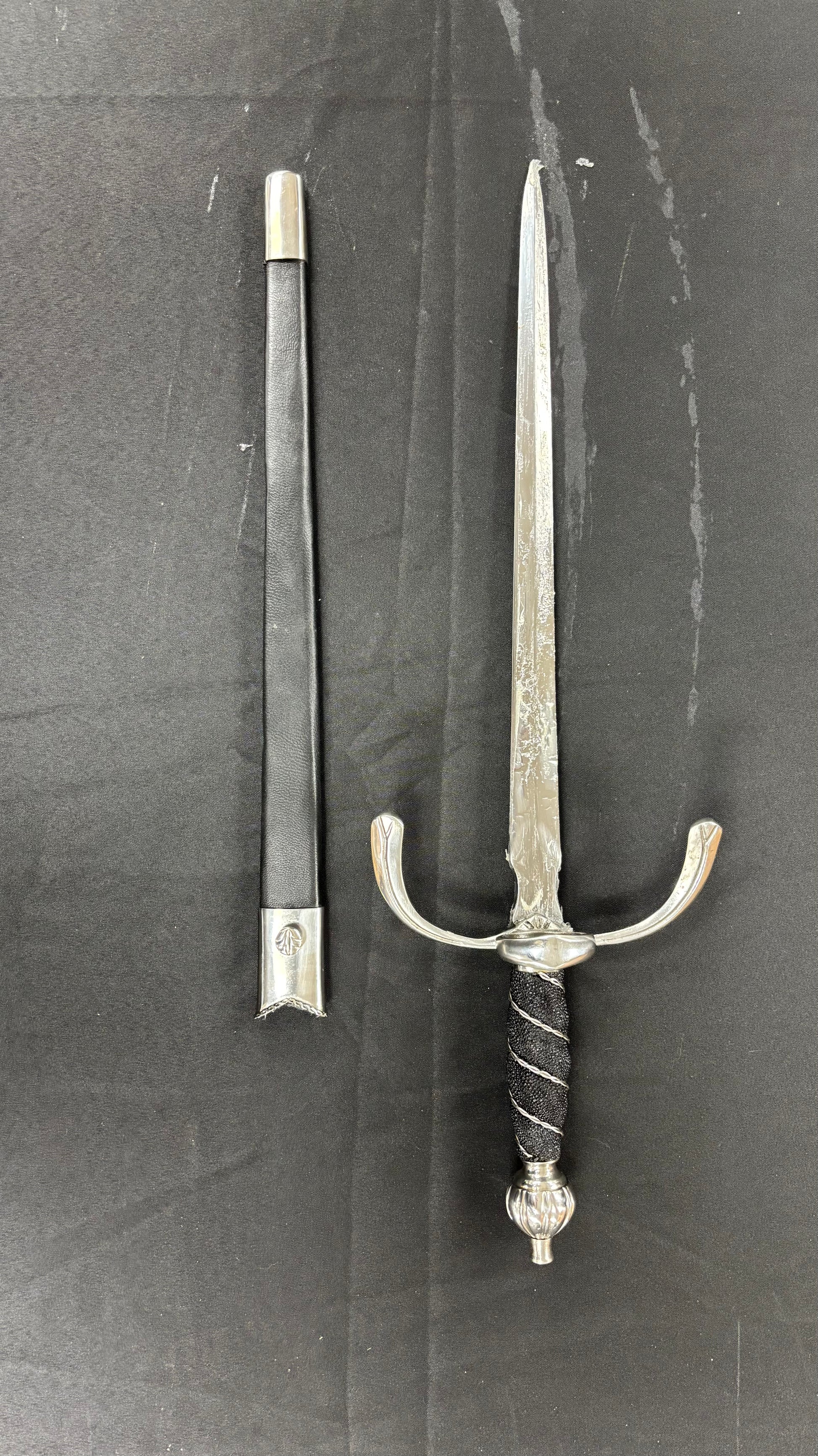 The Colichemarde emerged during the decline of the Rapier and the rise of the small sword. With a uniquely shaped blade that was extra wide at its forte but then dramatically tapered to a fine needle point. This allowed the sword to be used to parry or oppose even the heaviest weapons, yet remain light enough to be fenced with lightning speed. Cold Steel's interpretation of this blade closely mirrors the historic original, from extra wide forte to super sharp point. The hilt features a decorative double shell guard, complete with finger loops and knuckle bow, while the grip is completely wire wrapped and capped with a matching pommel. We have also created a matching dagger as an optional companion to this exquisite sword, with a beautifully polished blade, double quillons, and wire wrapped handle.