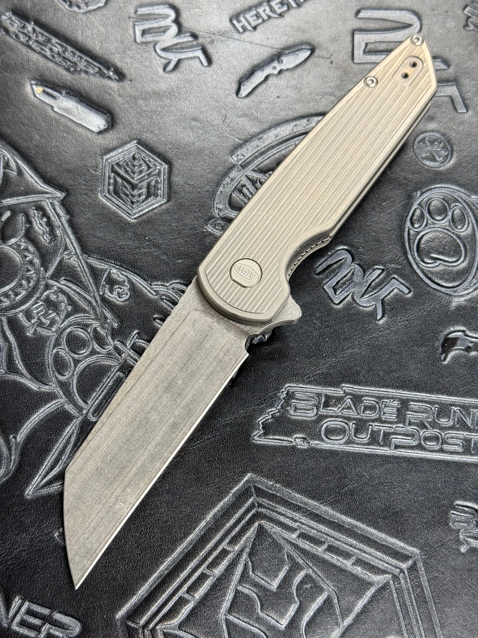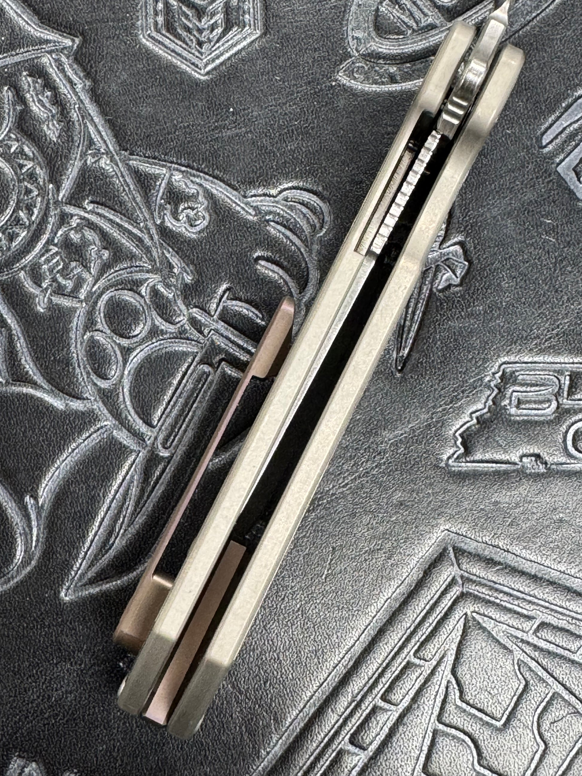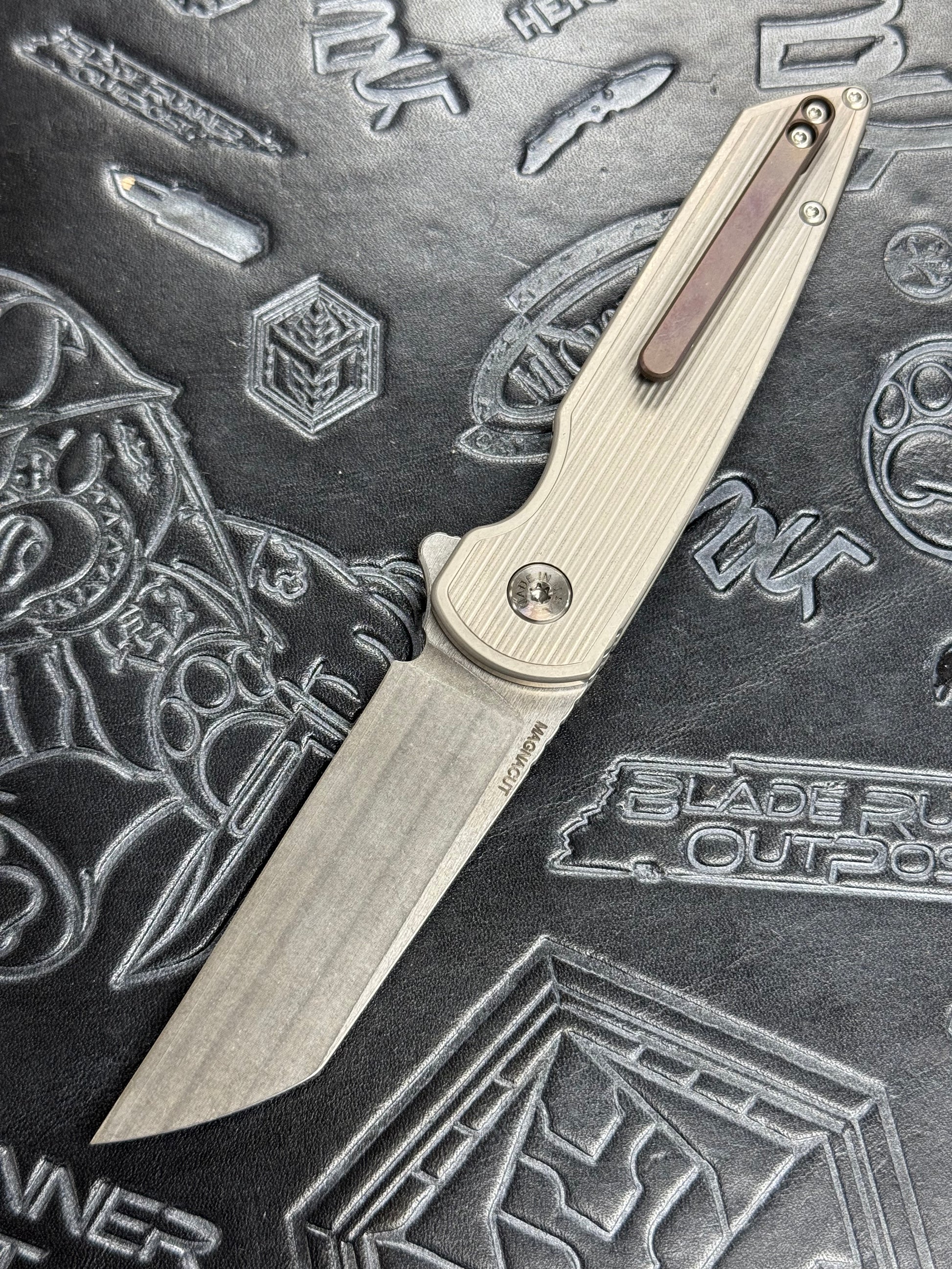 American Blade Works MODEL 2 TITANIUM Factory Silver / Bronze Ano Wharncliffe Magnacut