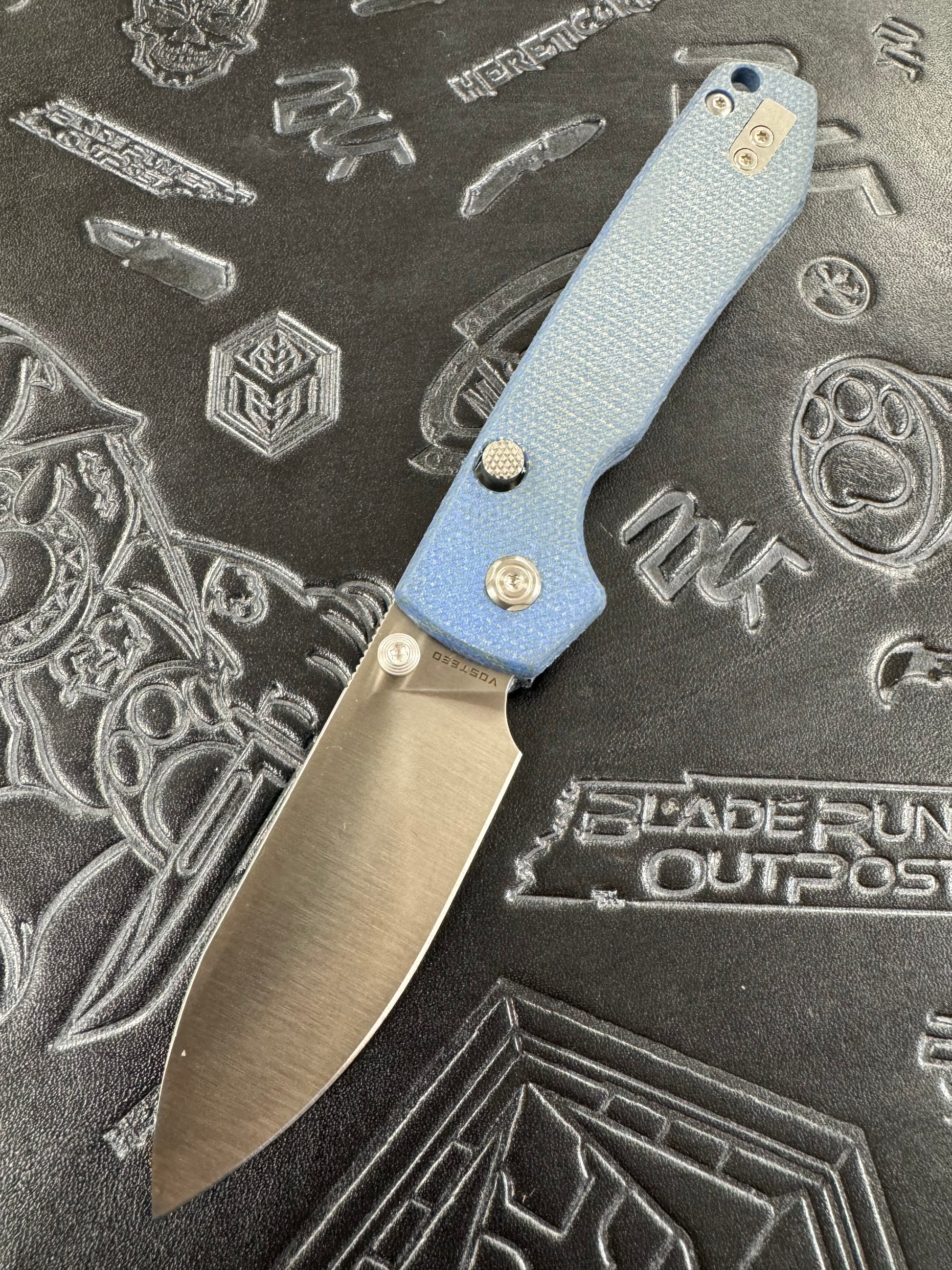 Vosteed Raccoon - Top Liner Lock (3.25" 14C28N Satin Blade & Blue Micarta Handle) - A2905