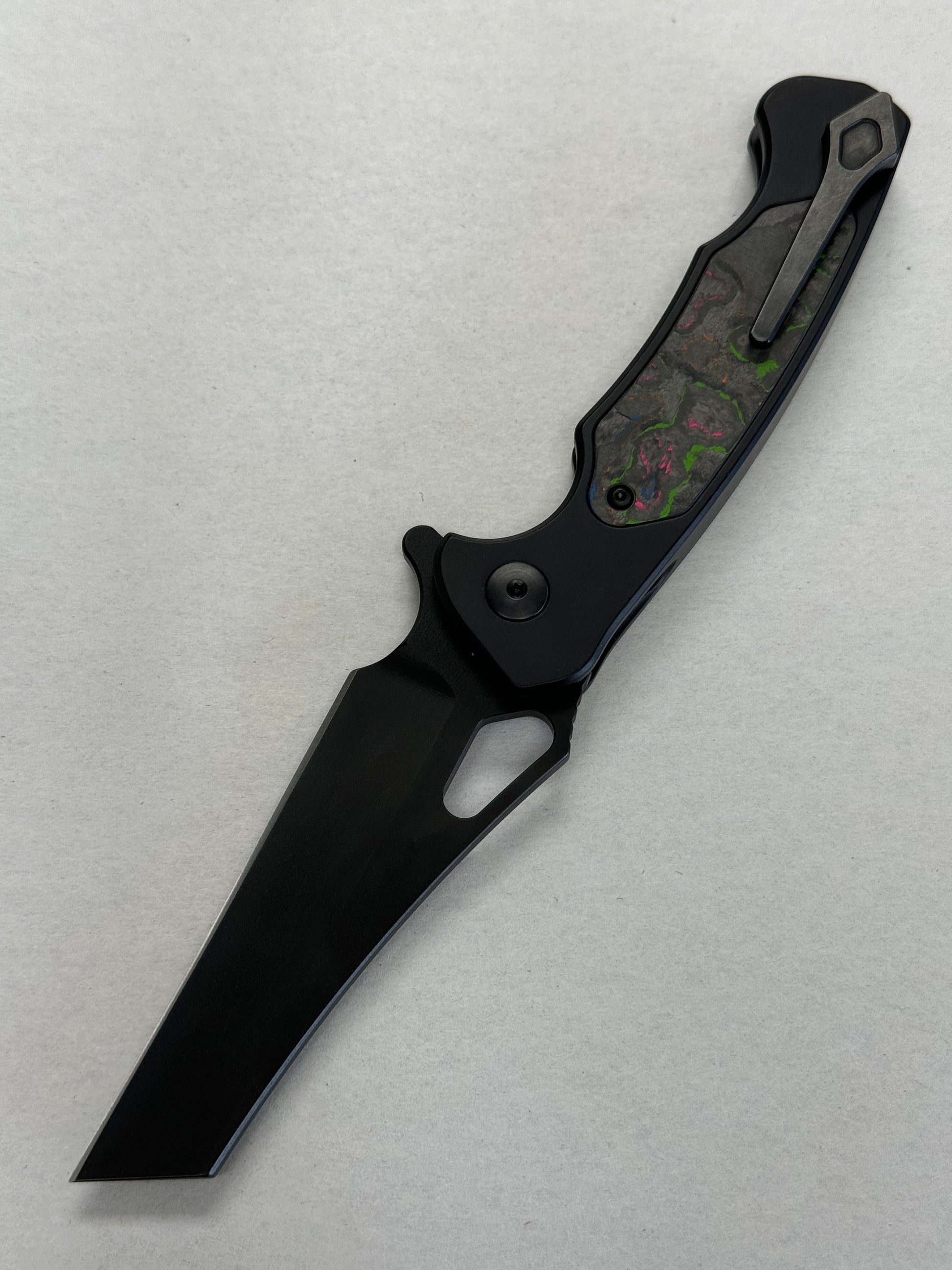 Dead Reckon Knives Ridgeback - 80s Camo Carbon in Series 2 Black Aluminum - WharnCleaver 3V SbNi - Button Lock - RB-2332-37 BR OP Exclusive