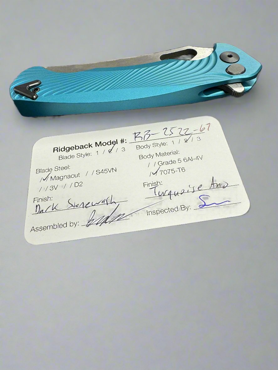 Dead Reckon Knives Ridgeback - Aluminum Turquoise, WharnCleaver, Series 2, TwoTone Magnacut, Button Lock, Dark Stonewash
