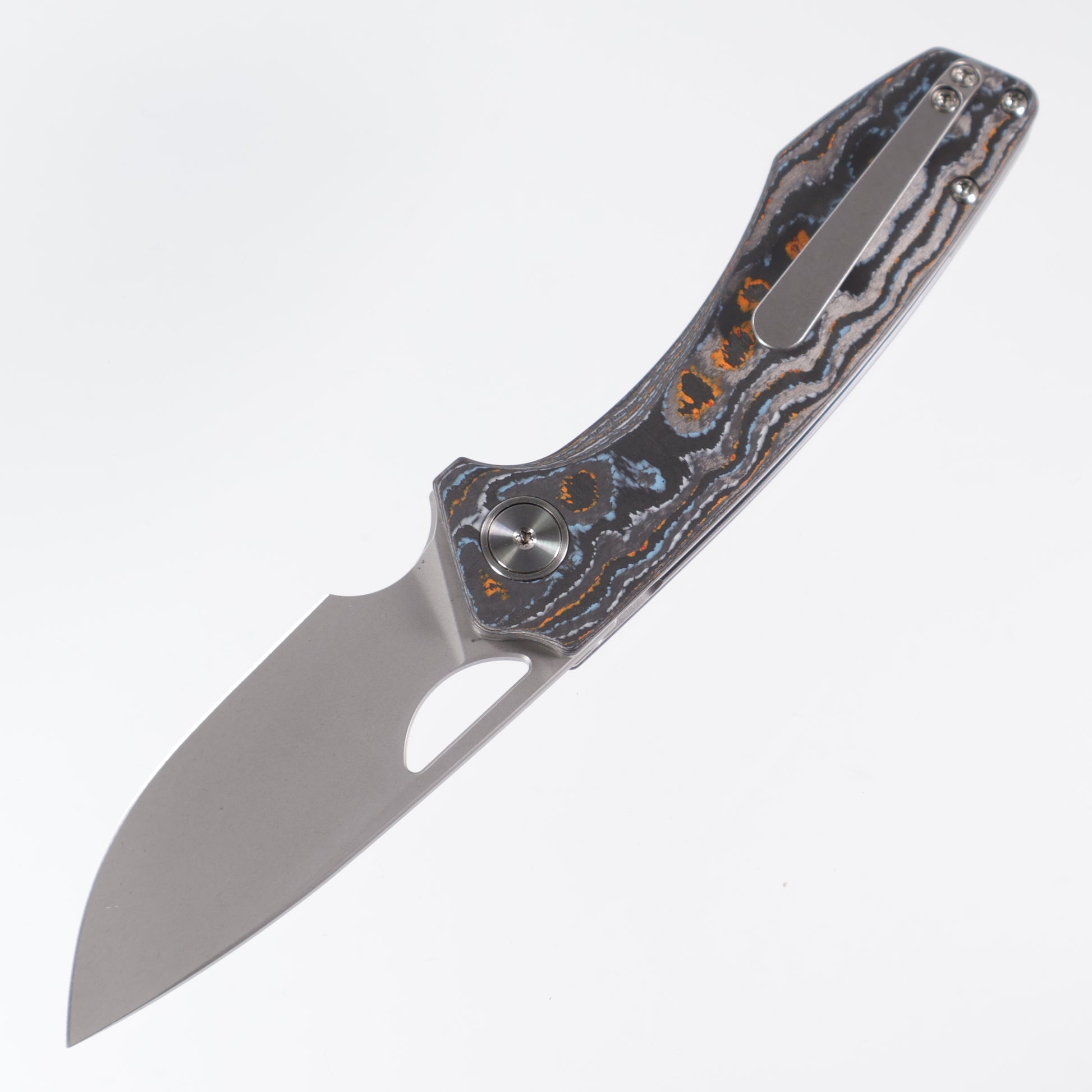 Sikorae Lite - Non Flipper - Gulf Camo Carbon scales, SS liner lock, Magnacut blade steel (61-63 HRC) in stonewash finish, Ti reversible clip, Ti hardware