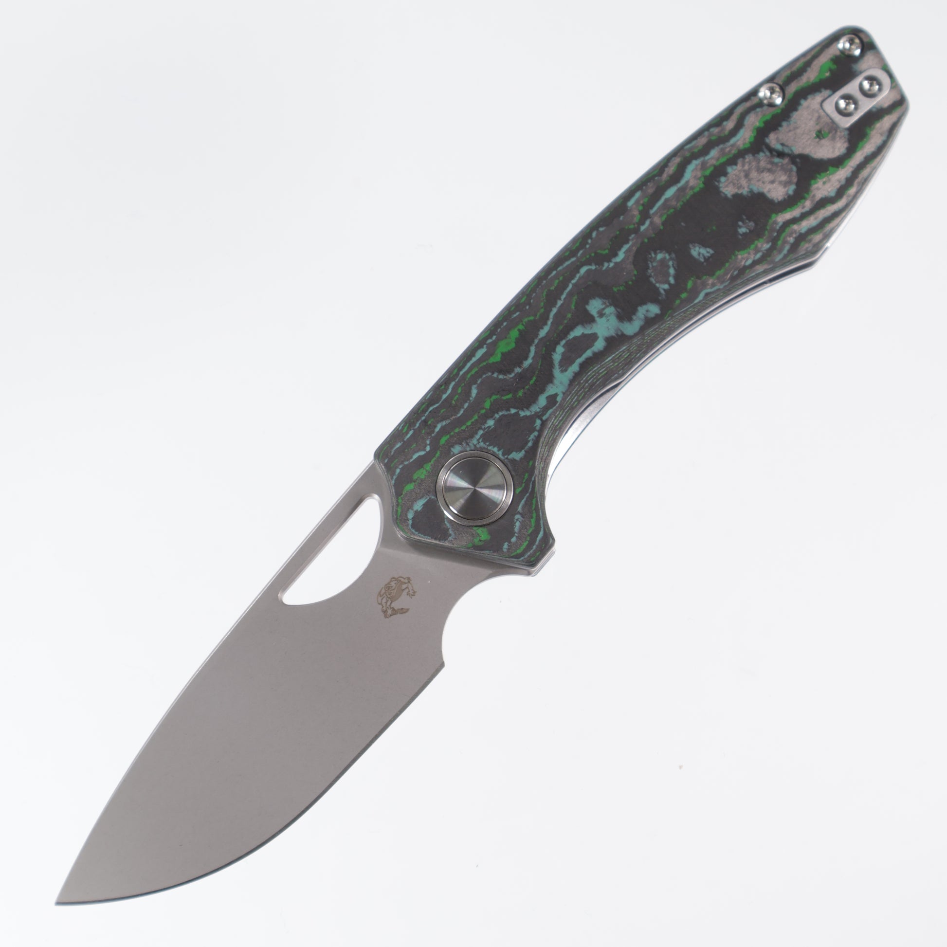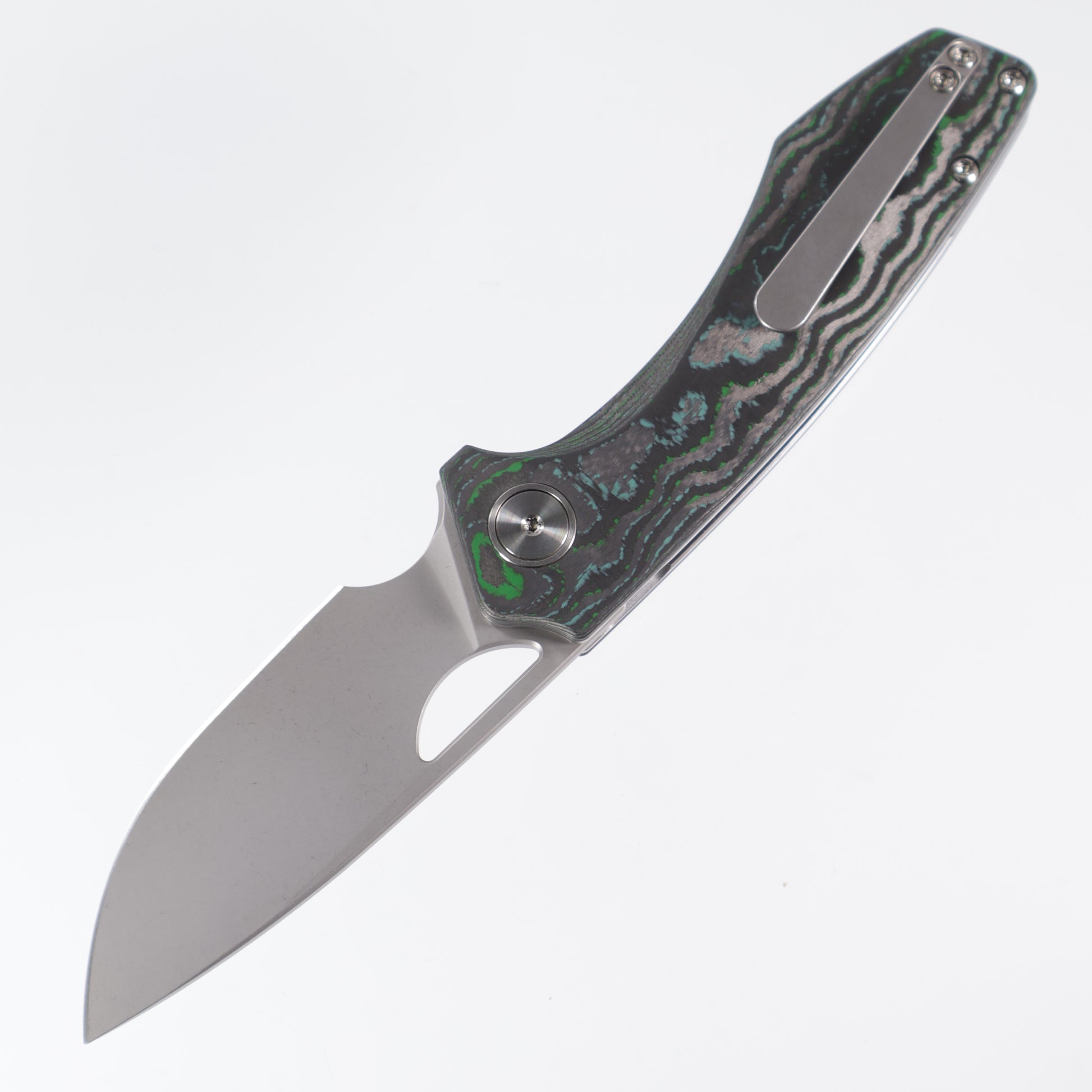 Sikorae Lite - Non Flipper - Kelp Bed Camo Carbon scales, SS liner lock, Magnacut blade steel (61-63 HRC) in stonewash finish, Ti reversible clip, Ti hardware