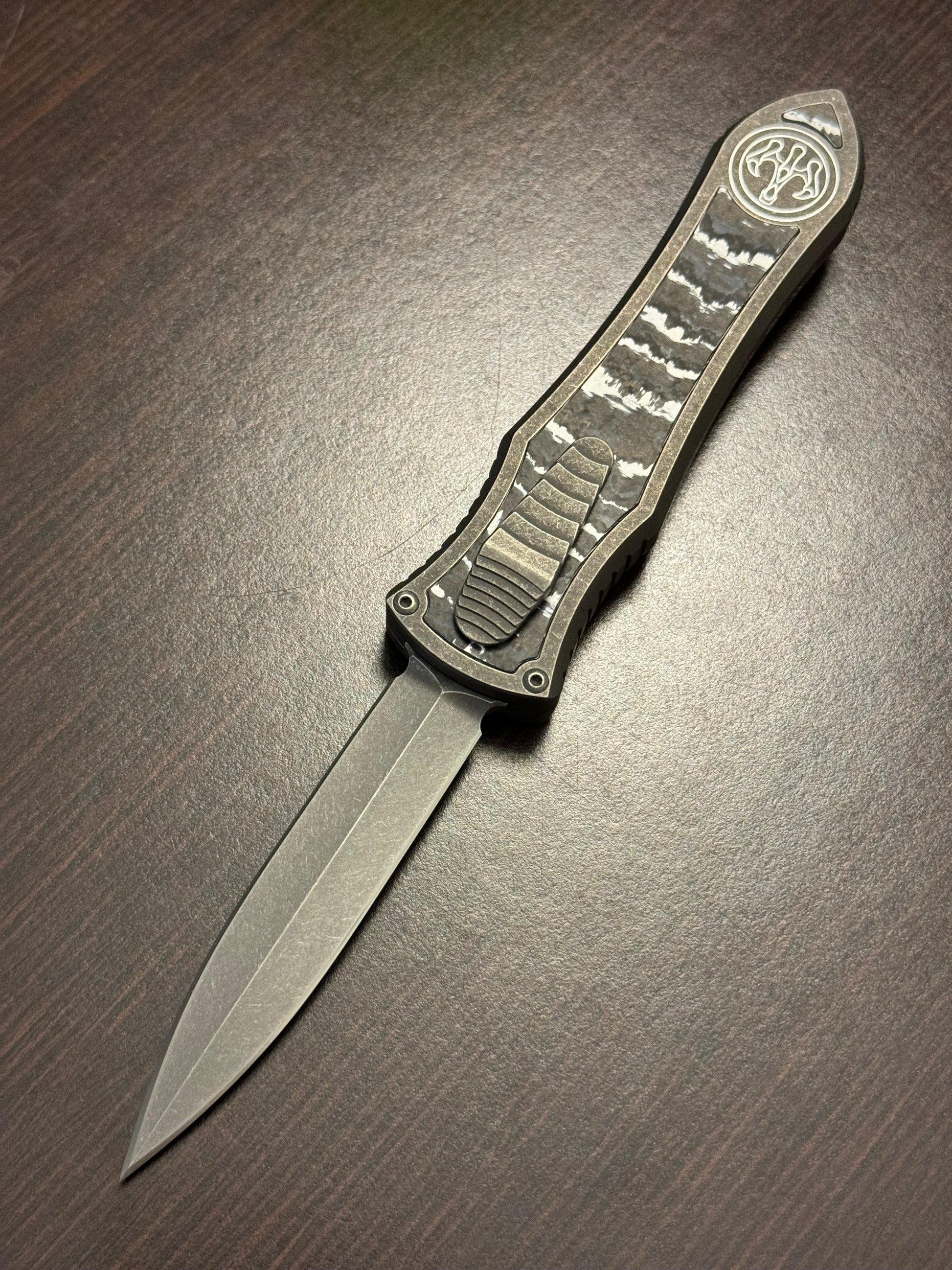 Hawk Deadlock Model C Titanium Handles Carbon Fiber Inlay Double Edge M390 BladeWest 24