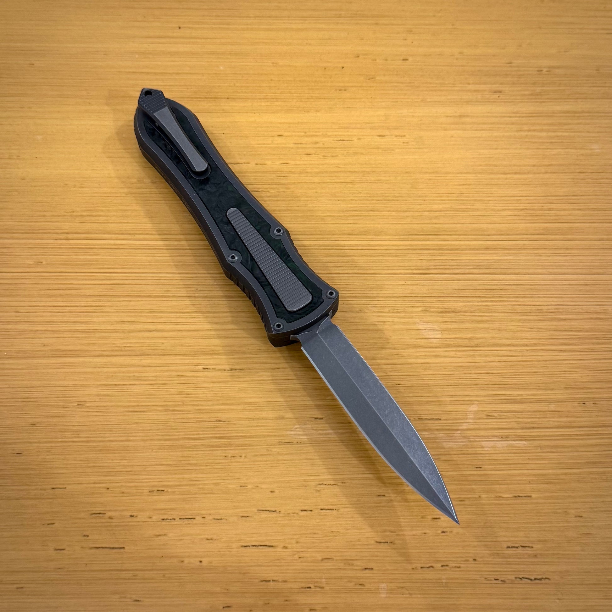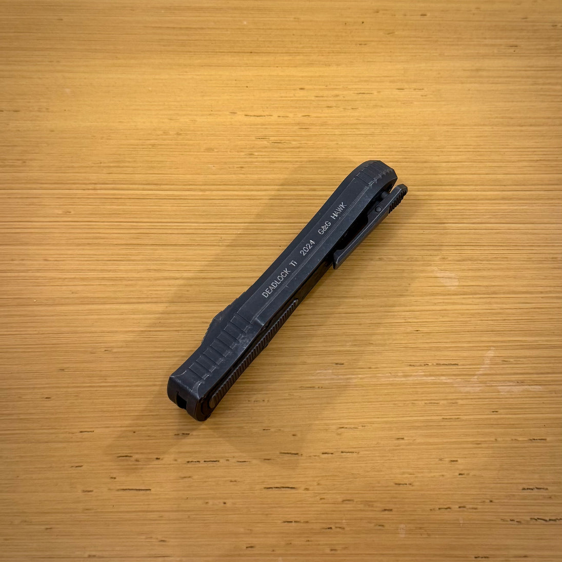 Hawk Knives Deadlock Model C featuring a full titanium chassis with Green Dark Matter Fat Carbon inlays & an M390 blade!