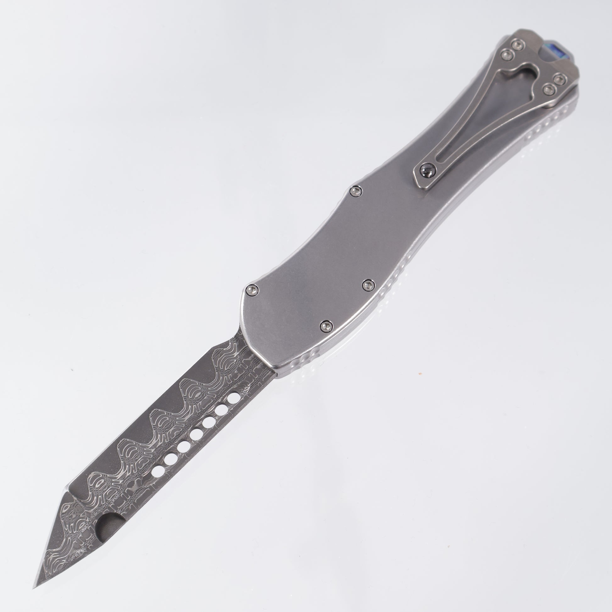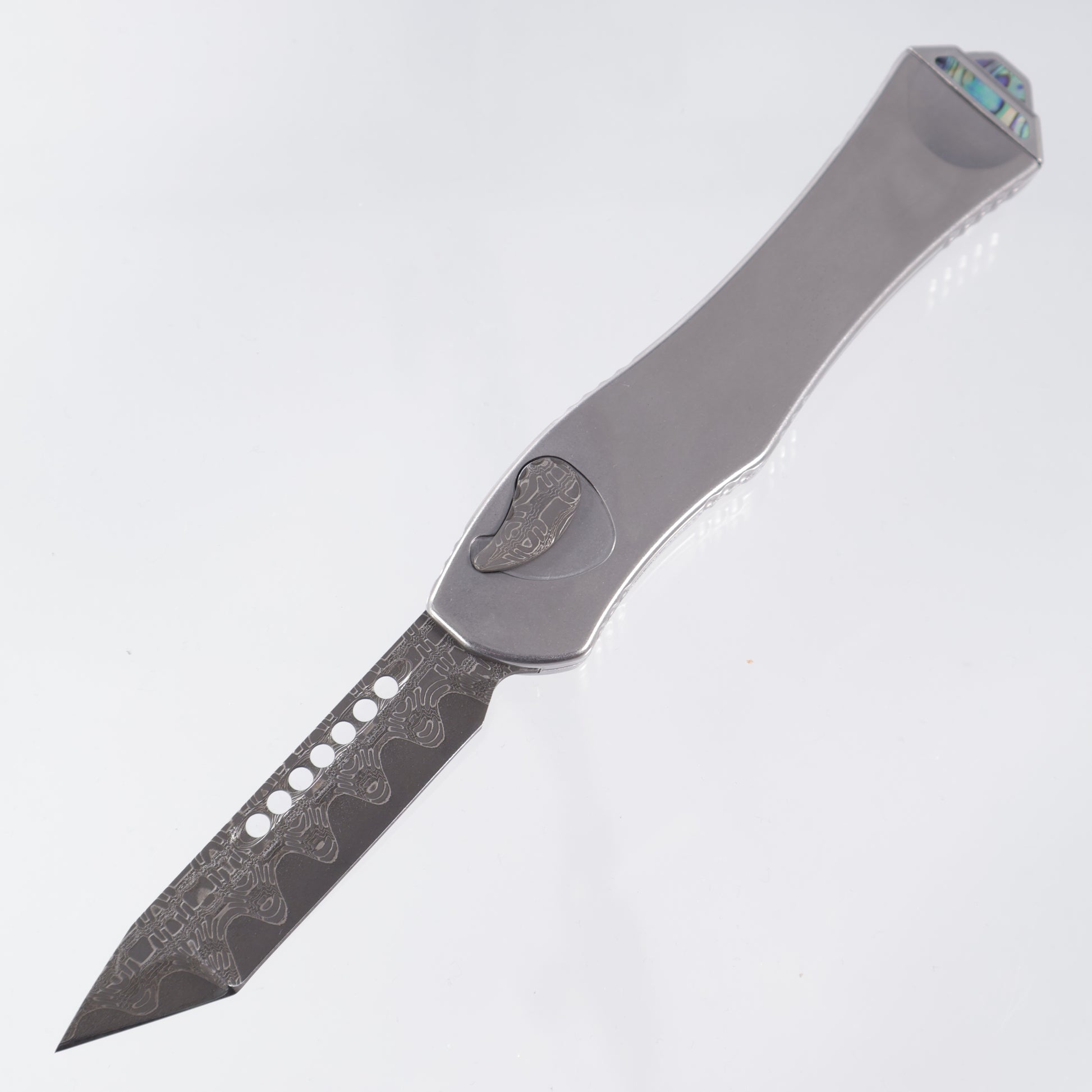 Heretic Hydra V4 Custom - Vegas Forge San Mai Reptilian Damascus - Stainess Steel Chassis w/ San Mai Reptilian button cover, Abalone inlays & Abalone button inlay - S/N: 008