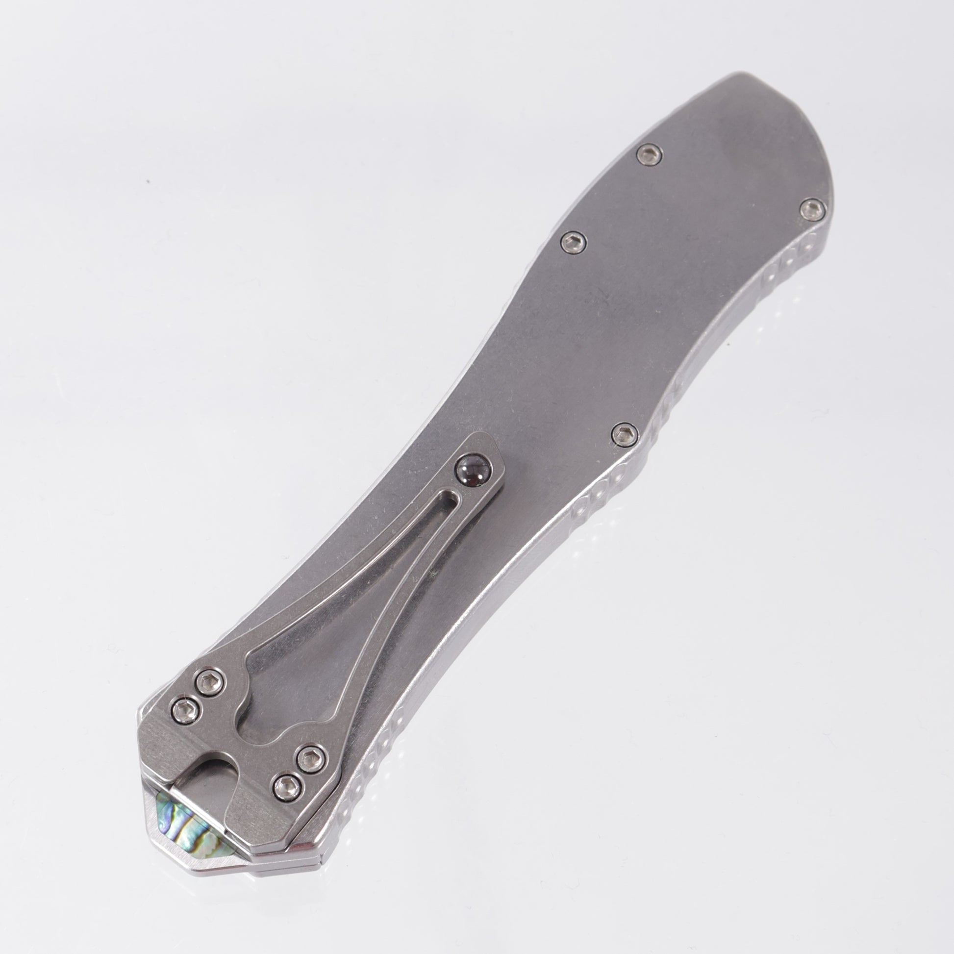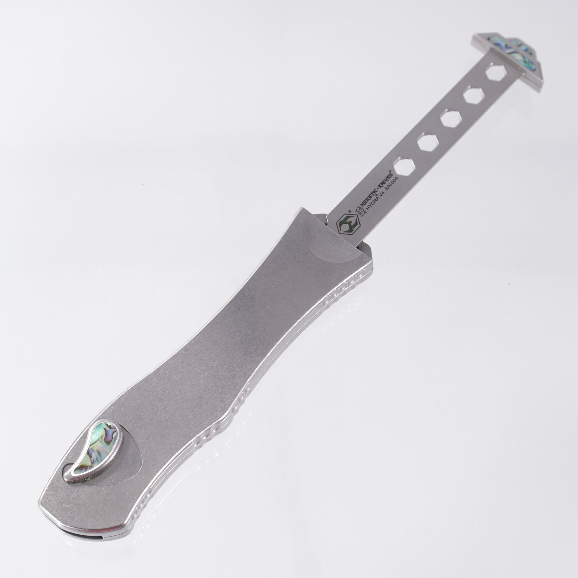 Heretic Hydra V4 Single Edge Custom - High Polish M390 - Tumbled Stainless Steel Chassis w/ Abalone Inlays