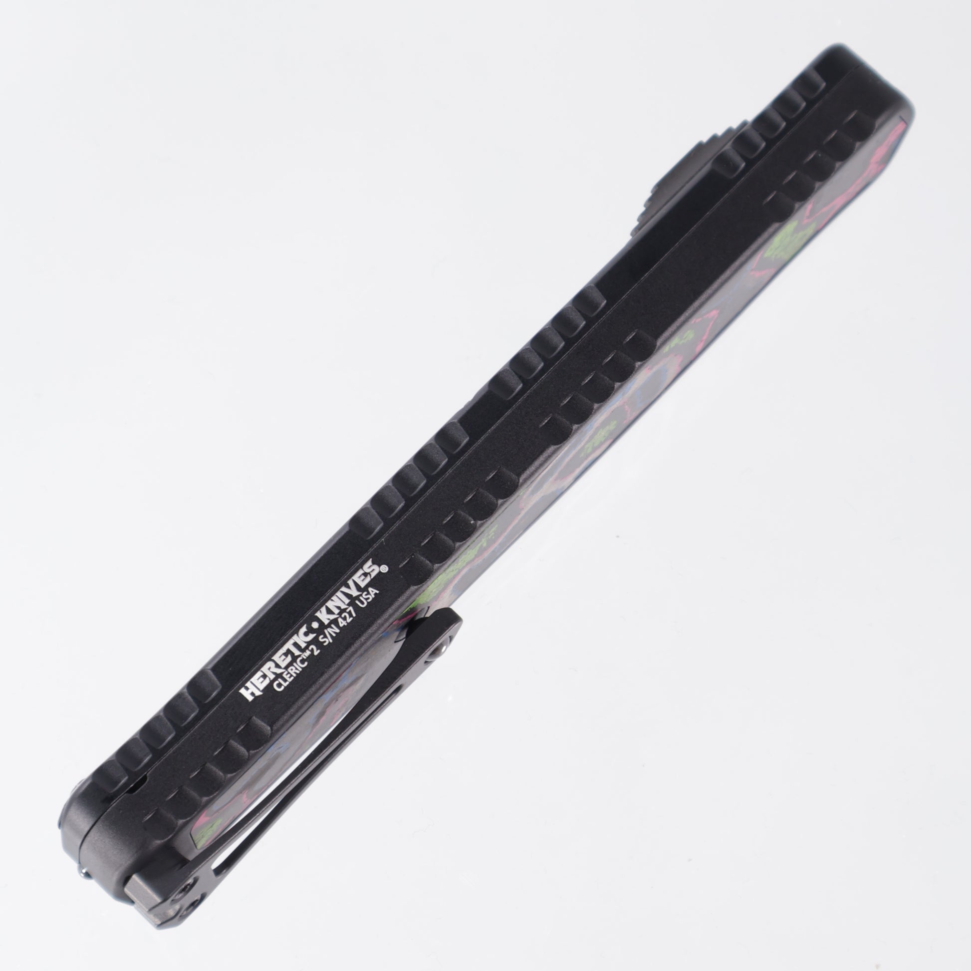 Heretic Cleric 2 - 80s Camo Carbon Inlaid Body & Button - Double Edge Full Serrated - DLC Magnacut - BR OP Exclusive - Cleric II H020-6C-80/CC