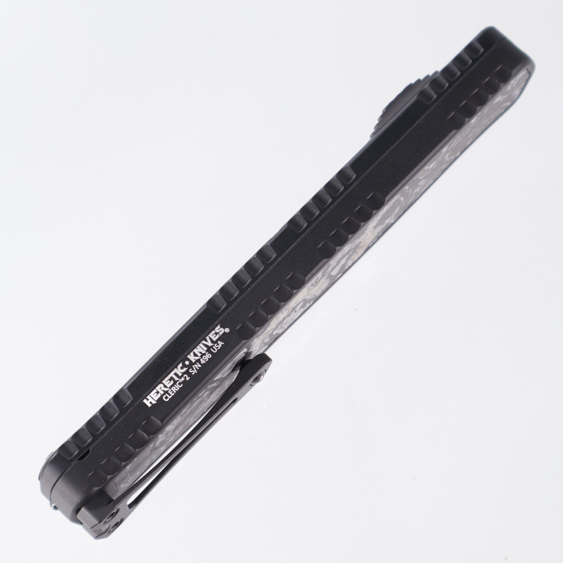 Heretic Cleric 2 - White Camo Carbon Inlays - DLC Double Edge Magnacut - Cleric II H020-6A-WT/CC