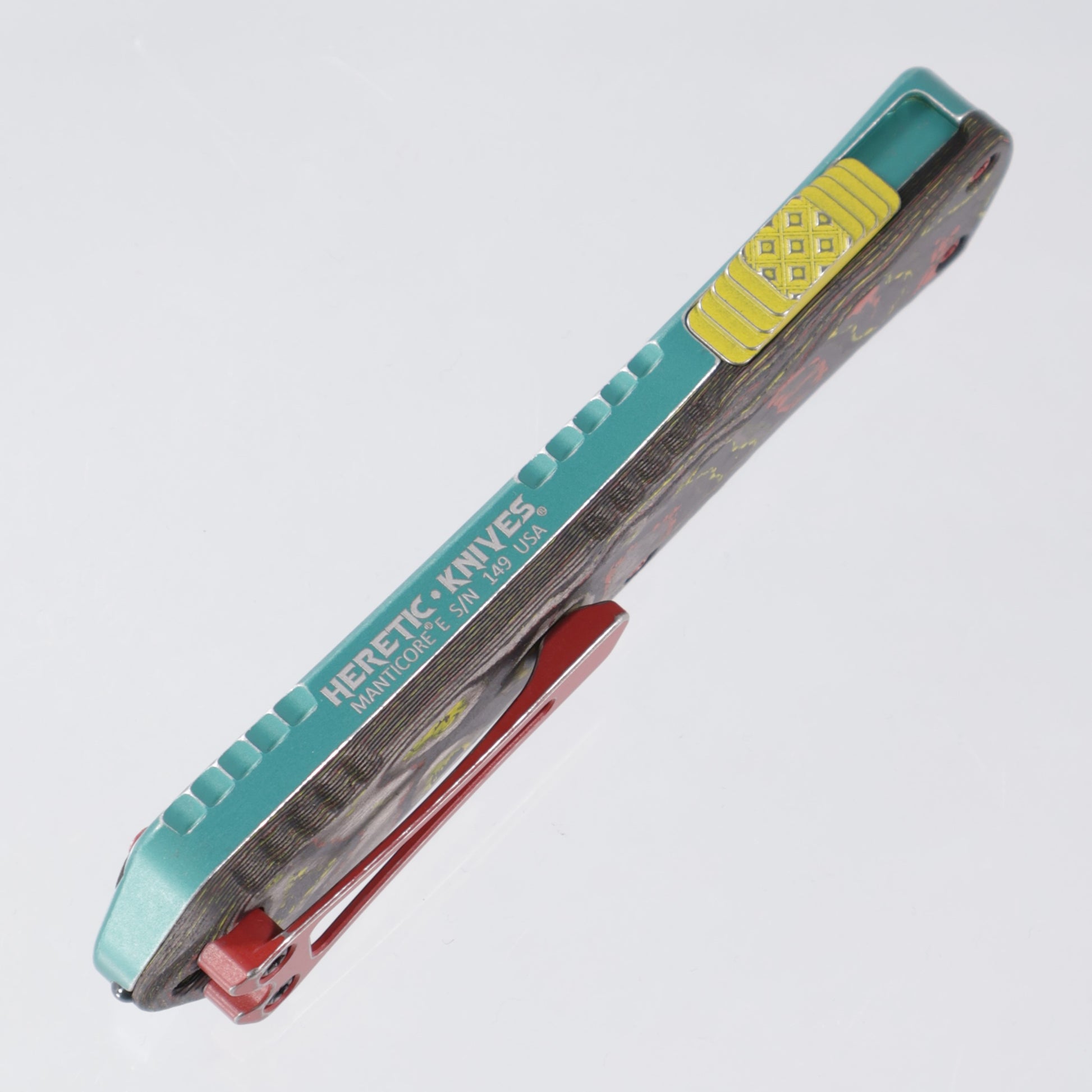 Heretic Manticore E - Bounty Hunter Double Edge Full Serrate - CamoCarbon & Distressed Aluminum - Two-Tone Magnacut - H028-10C-BOUNTY