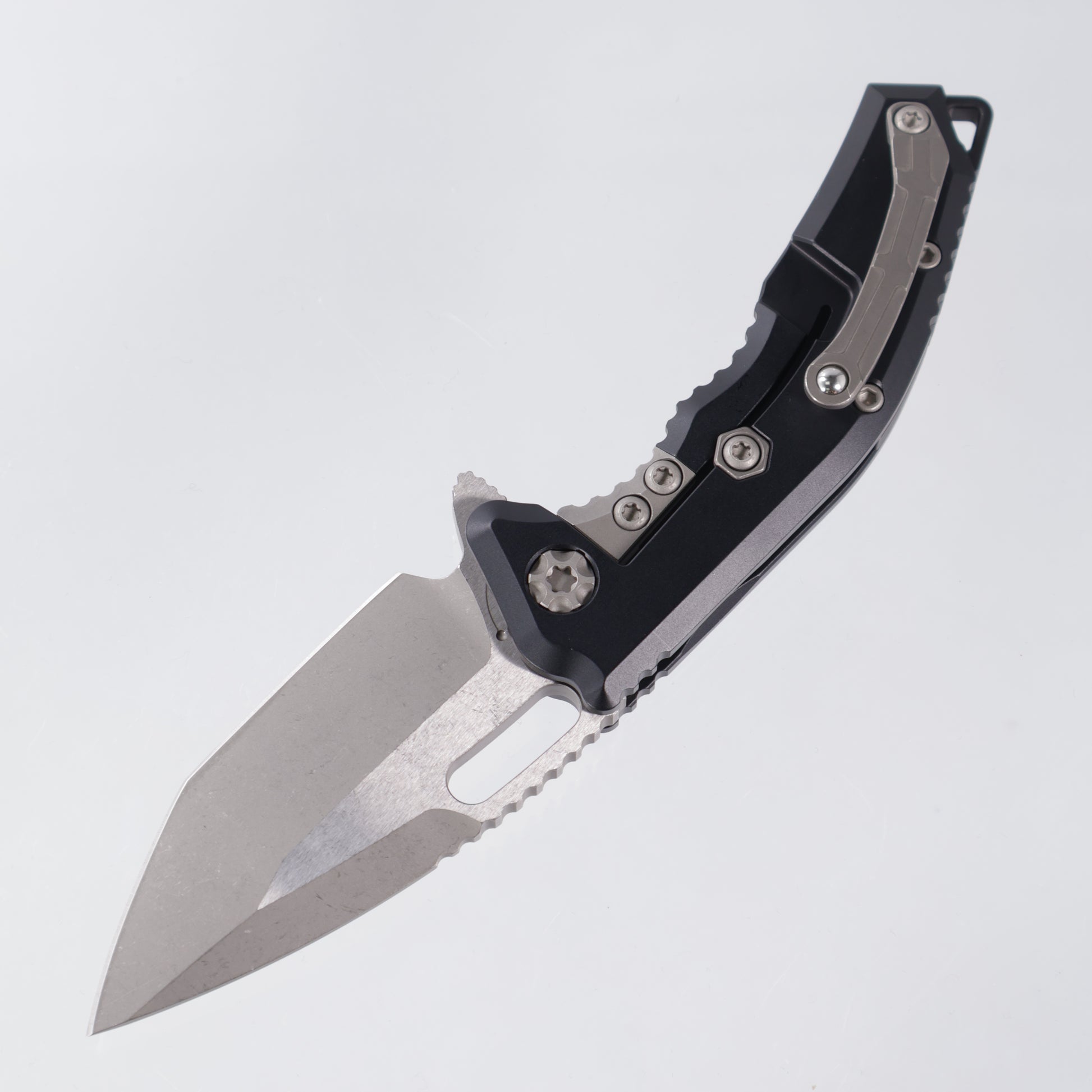 Heretic Medusa Manual - Battleworn Magnacut - Black Aluminum Frame Lock & Black Traction Inlays - H009-5A
