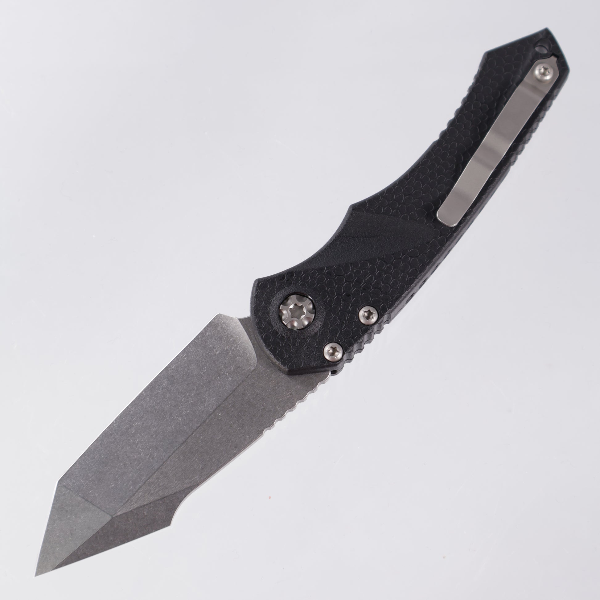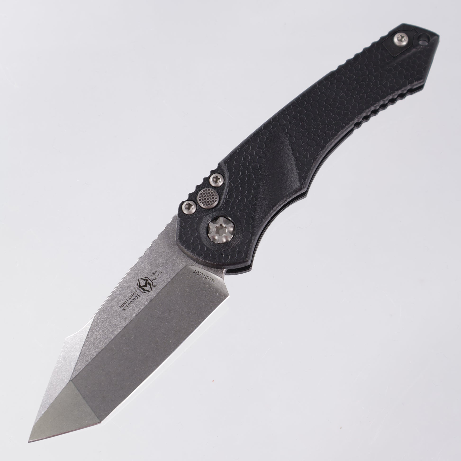 Heretic Mini Pariah Auto - Tanto Stonewash Magnacut - Black Polymer - H055-2A