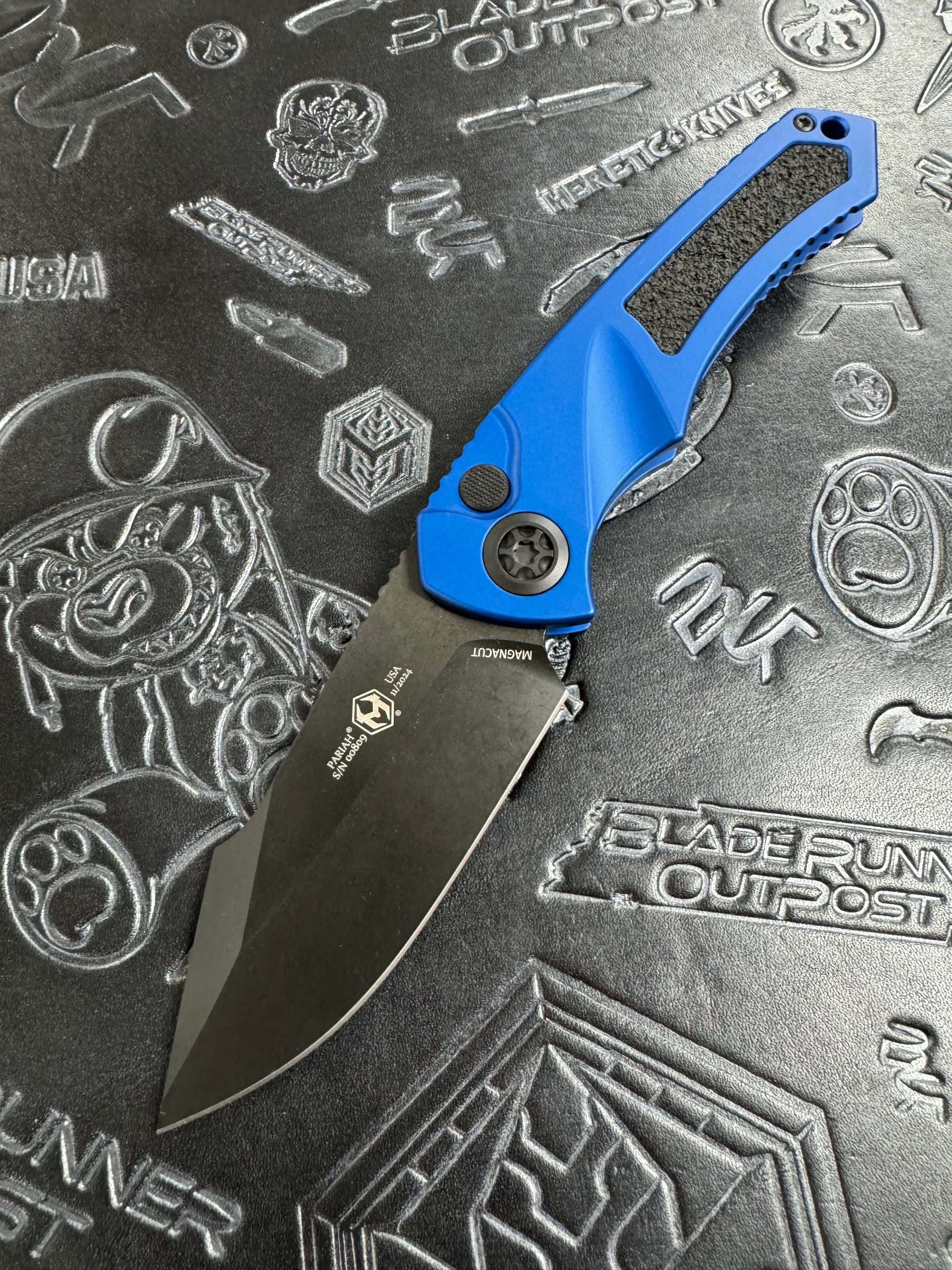Heretic Knives Pariah Auto Blue Handle w/ Black Grip Inlays DLC Blade H048-6A-BLU