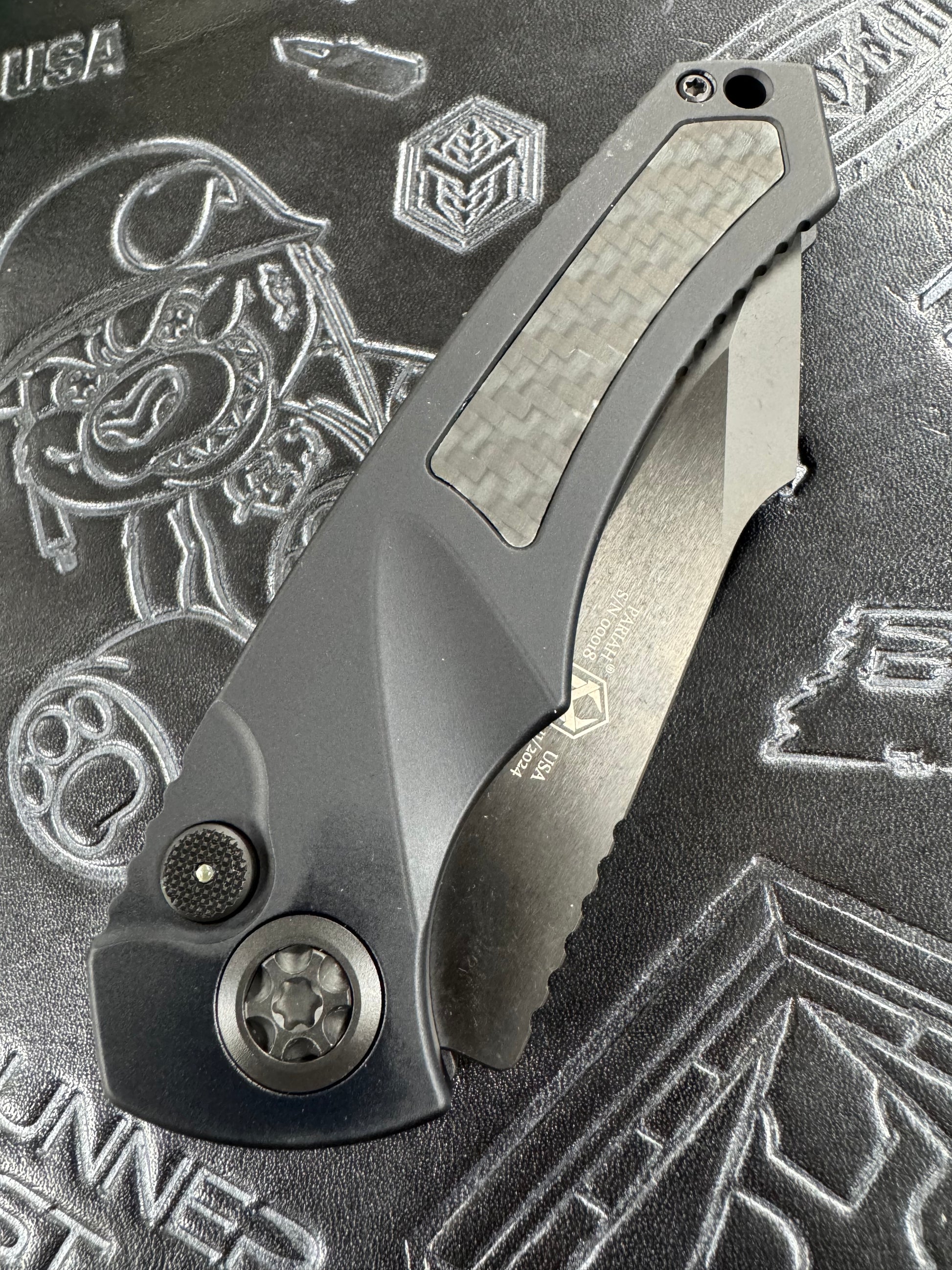 Heretic Knives Pariah Auto w/ Tritium Inlaid Button & GITD Carbon Fiber Inlays w/ DLC MagnaCut H048-6A-GLO/CF