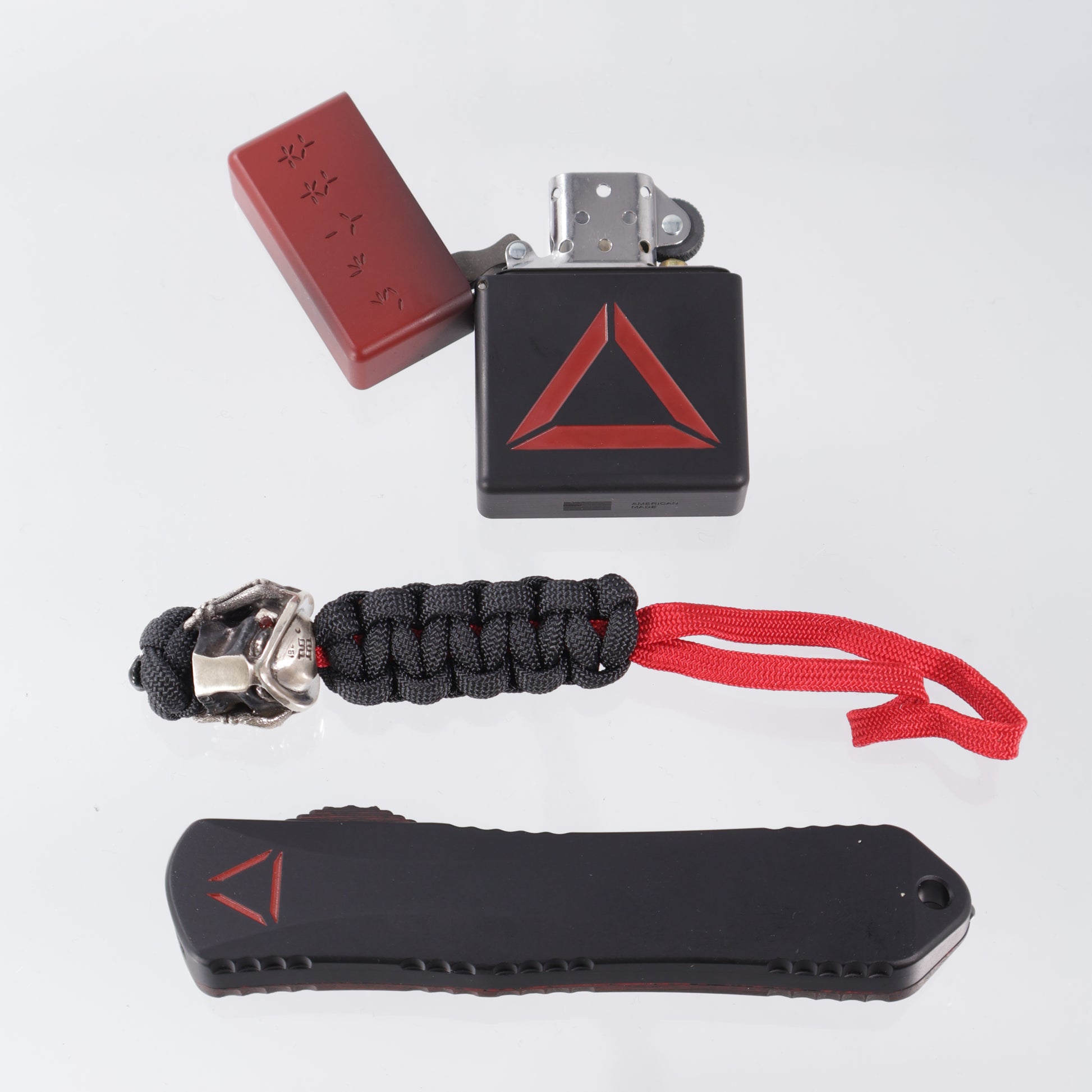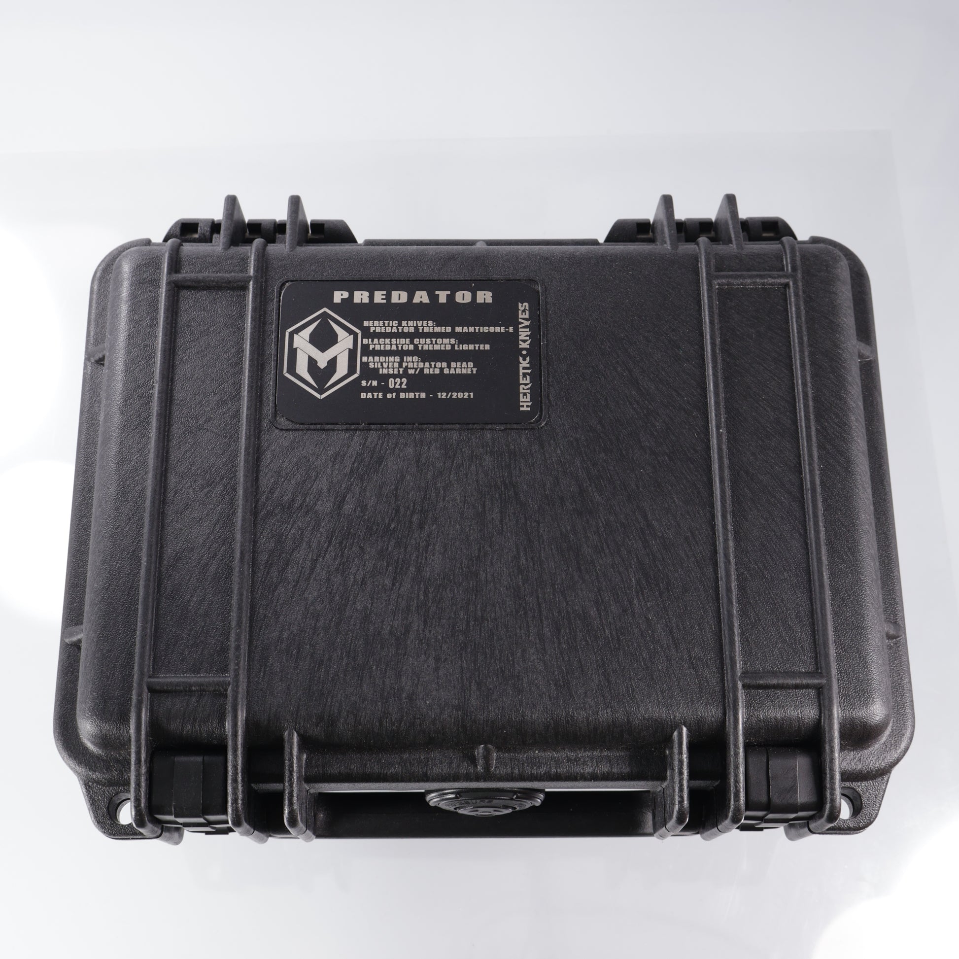 Heretic Knives Predator Themed Manticore E + Blackside Customs Predator Themed Lighter + Harding Inc. Silver Predator Bead Inset w/ Red Garnet
