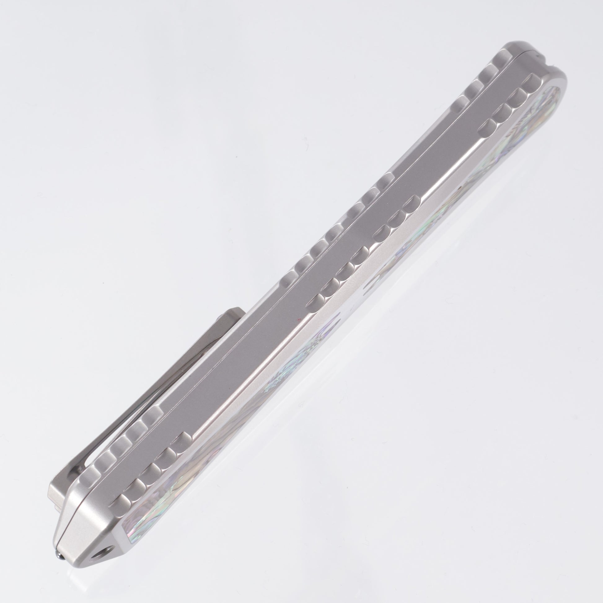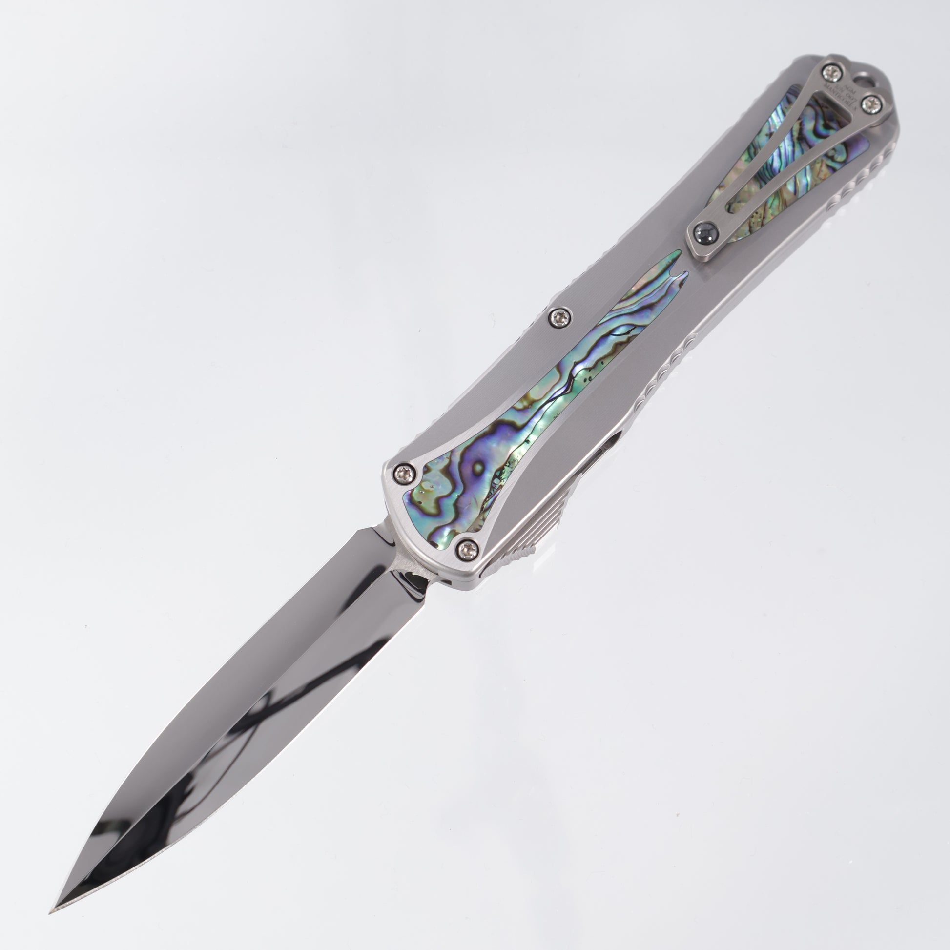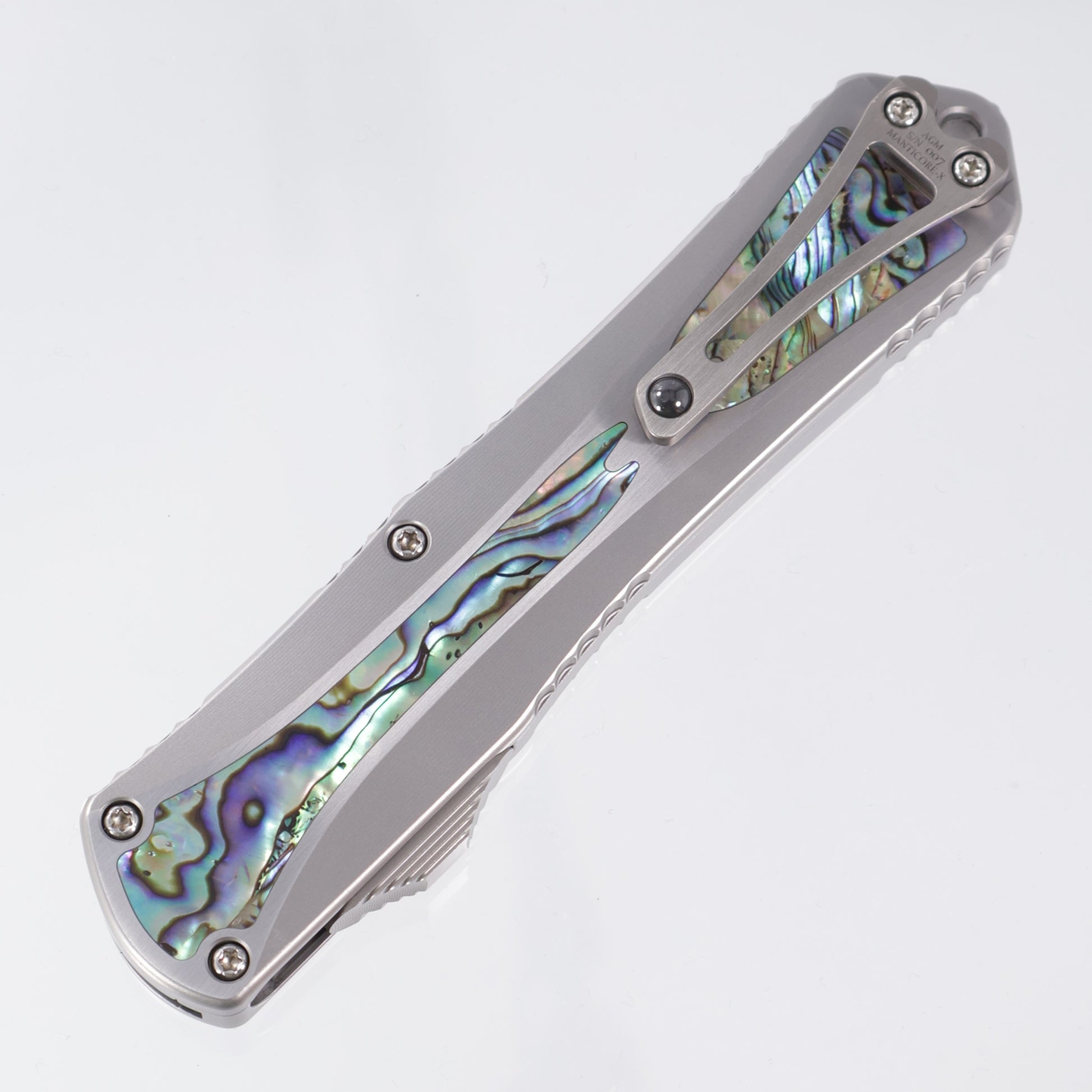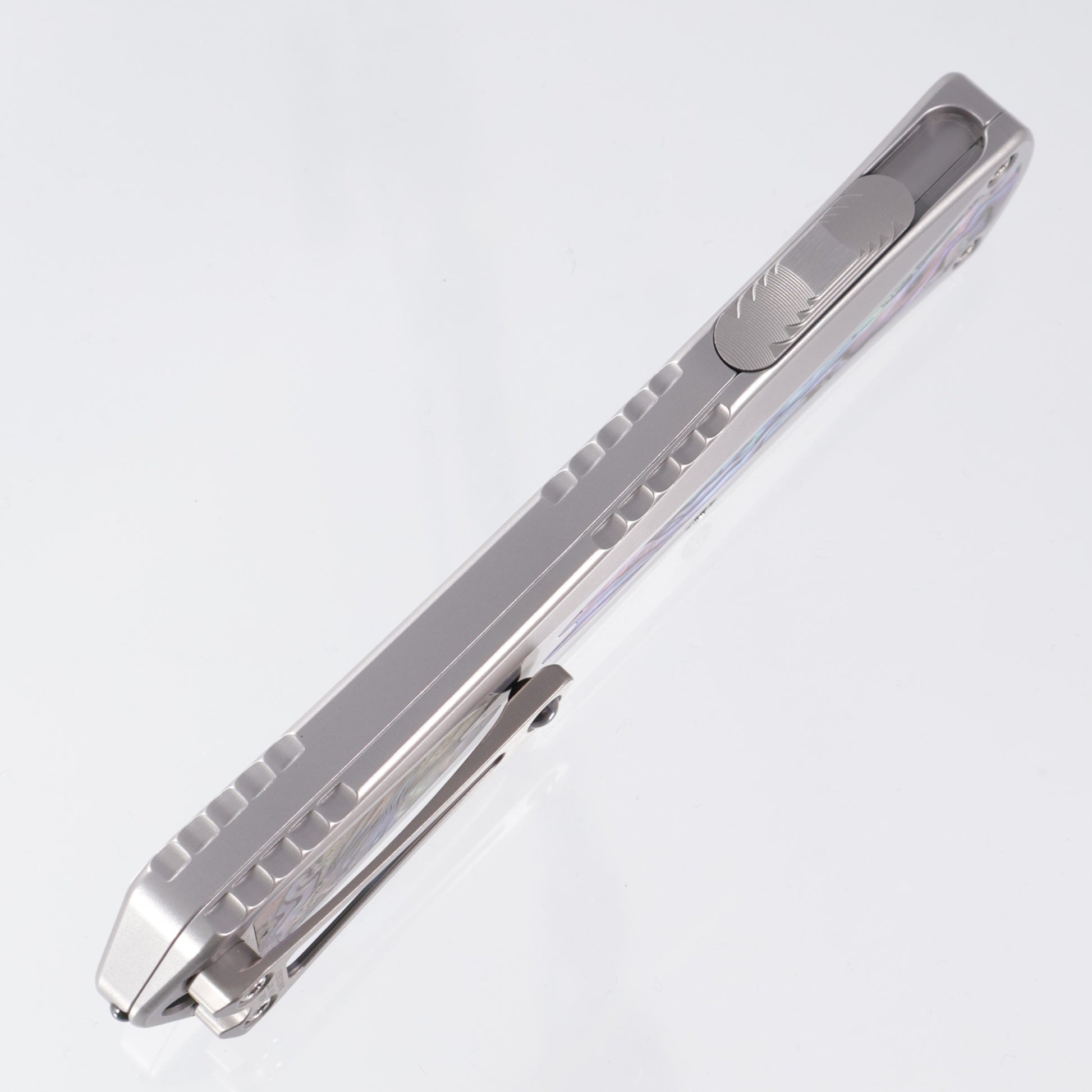 Manticore X Custom - Hand Ground Elmax D/E Mirror Polish - Hand Rubbed Stainless Handle w/ Abalone Inlays - Titanium Satin Clip