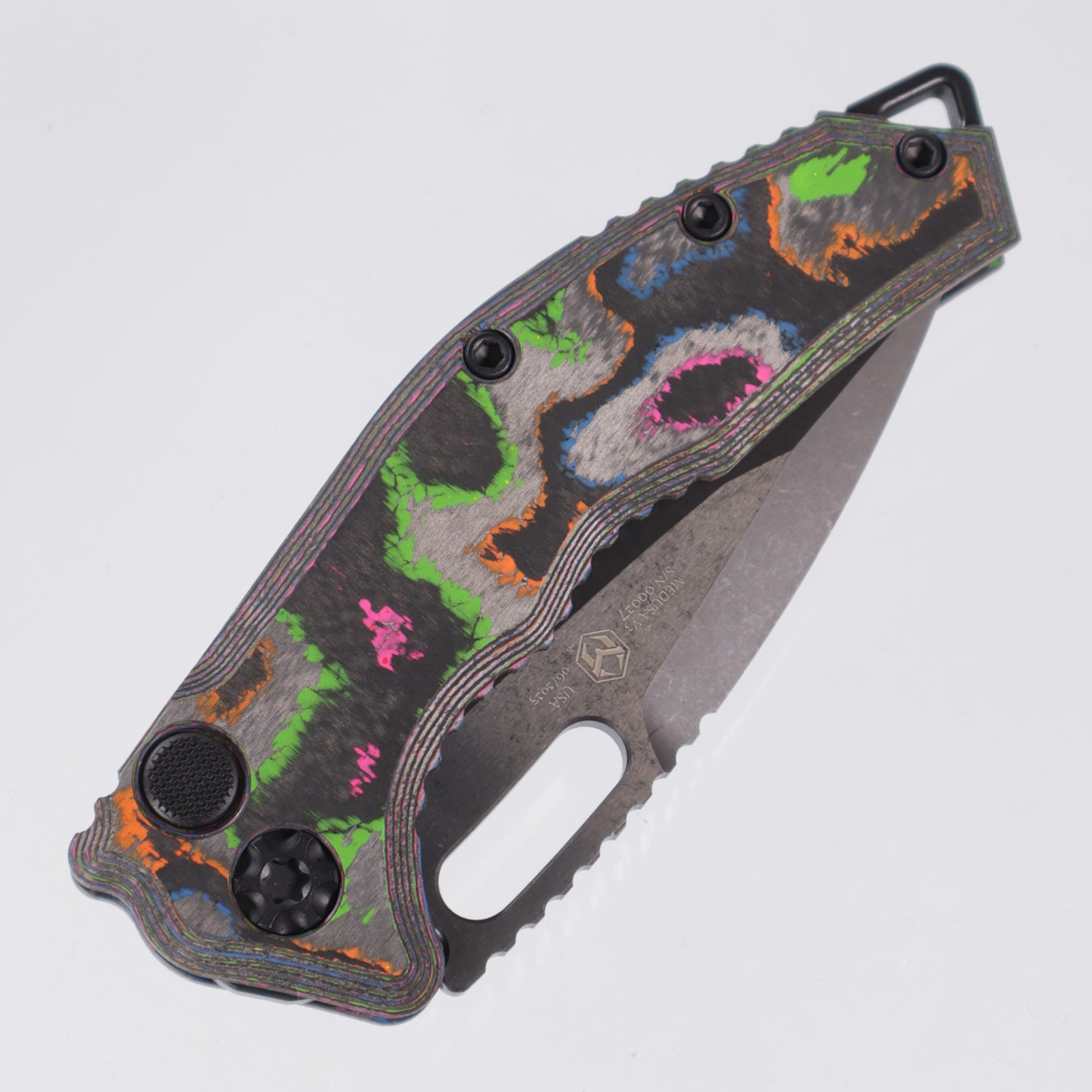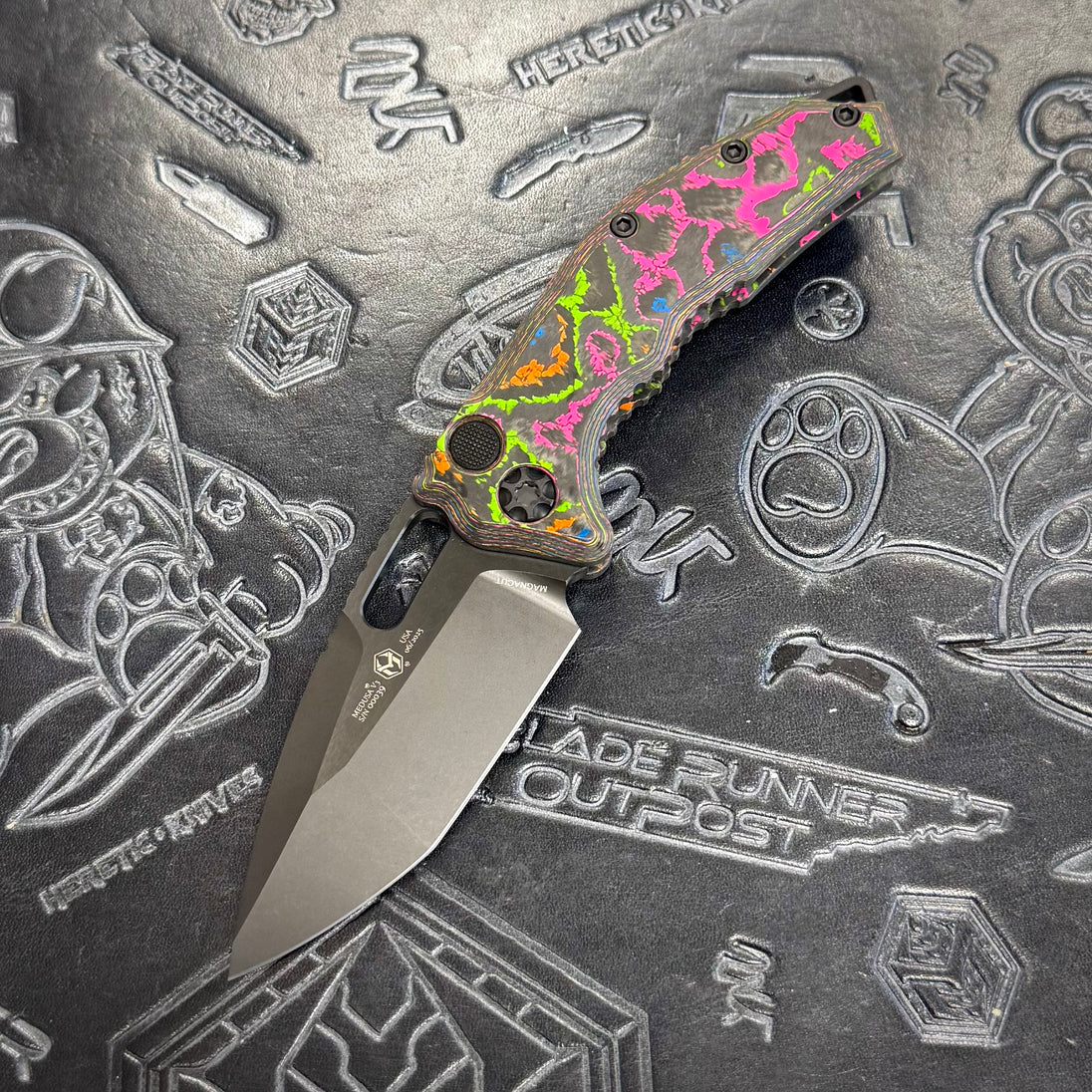 Medusa V3 auto featuring a full 80s Camo Carbon chassis, DLC Tanto Magnacut blade & blacked out hardware! Limited run, not to be reproduced.