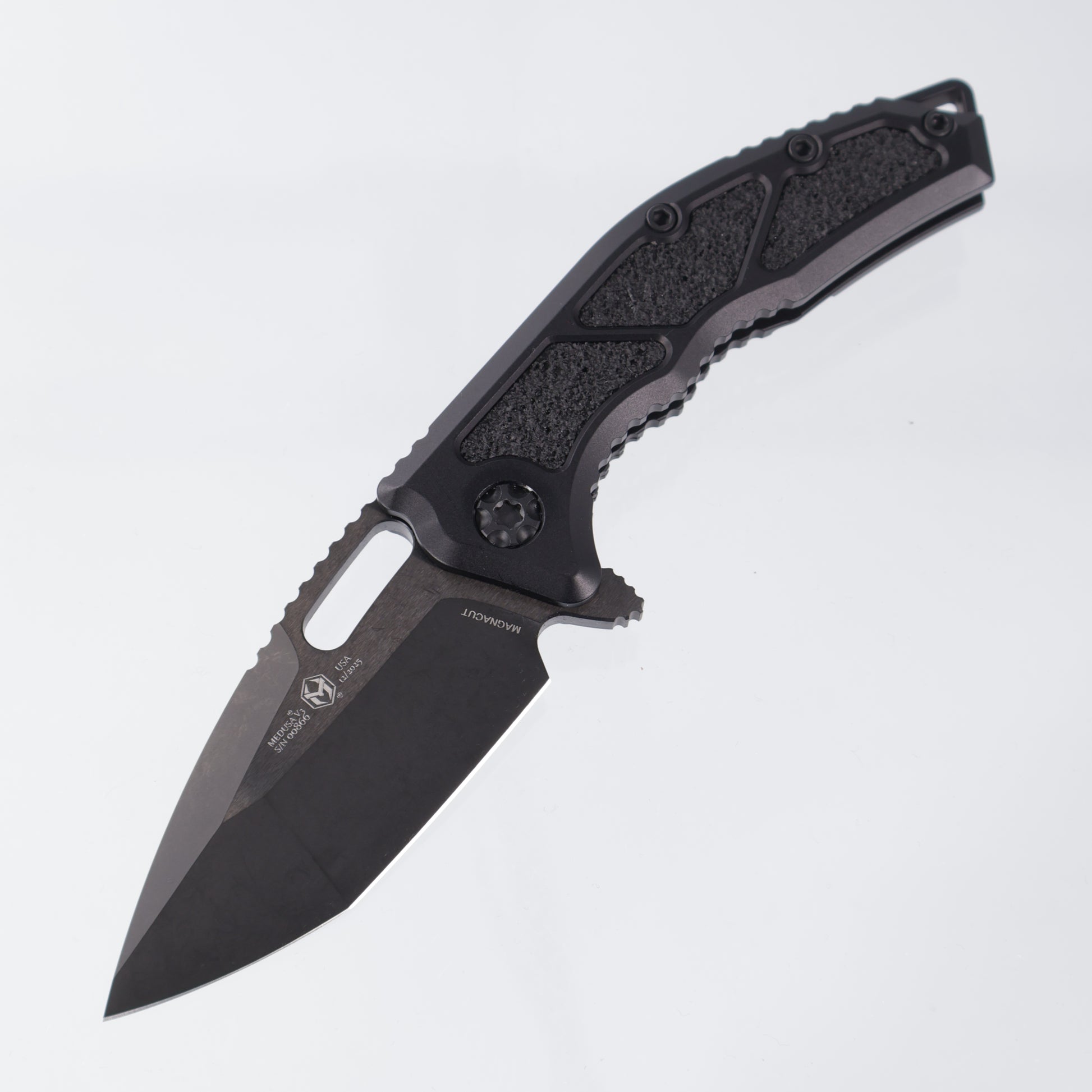 Medusa V3 Manual featuring a Black aluminum chassis & a DLC Tanto Magnacut blade!