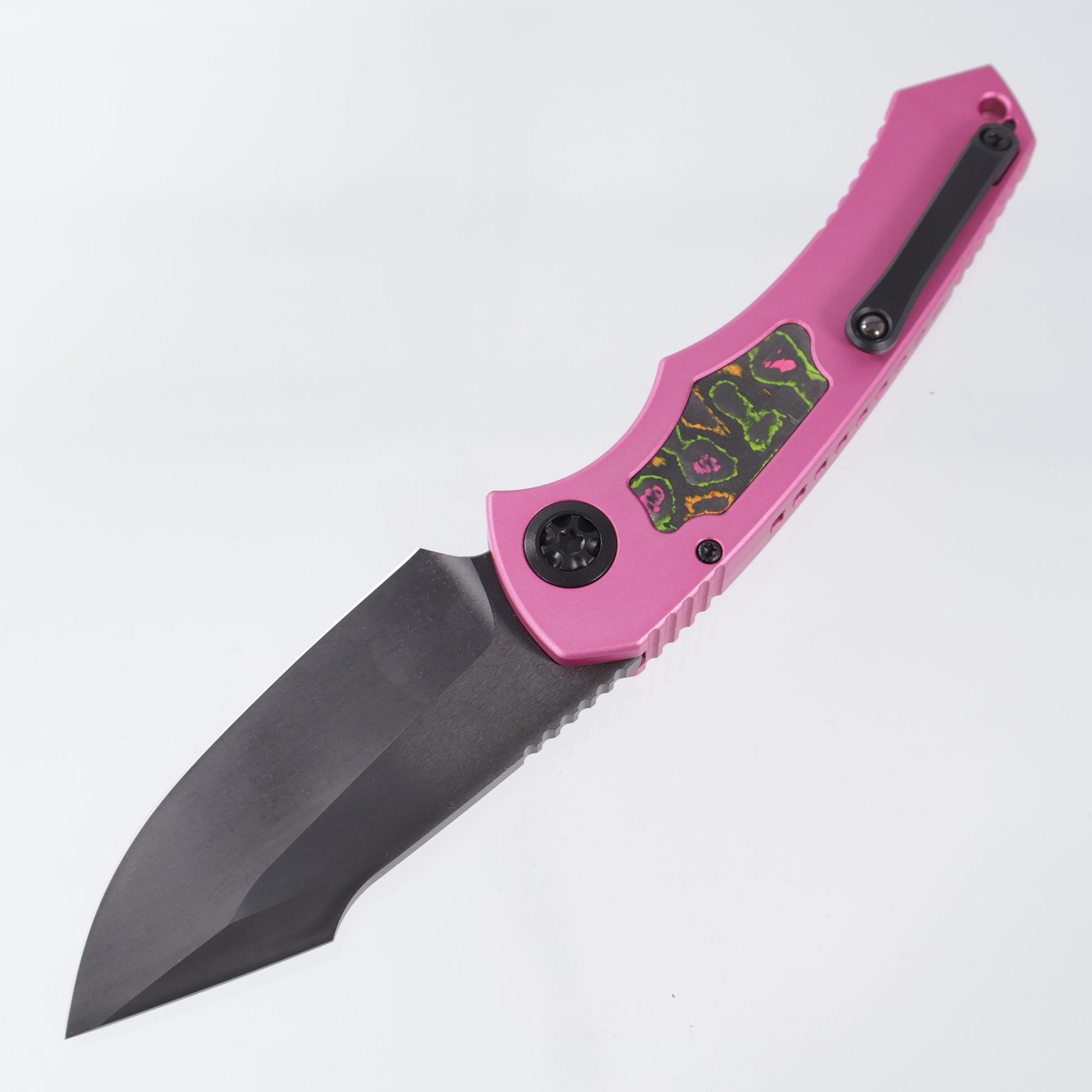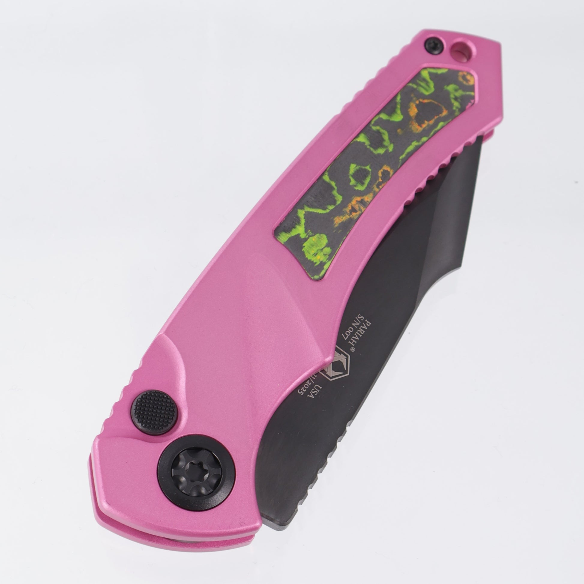 Heretic Pariah Auto Single Edge - Pink Aluminum w/ 80s Camo Carbon inlays - DLC Magnacut - H048-6A-PINK/80S - BROP Exclusive