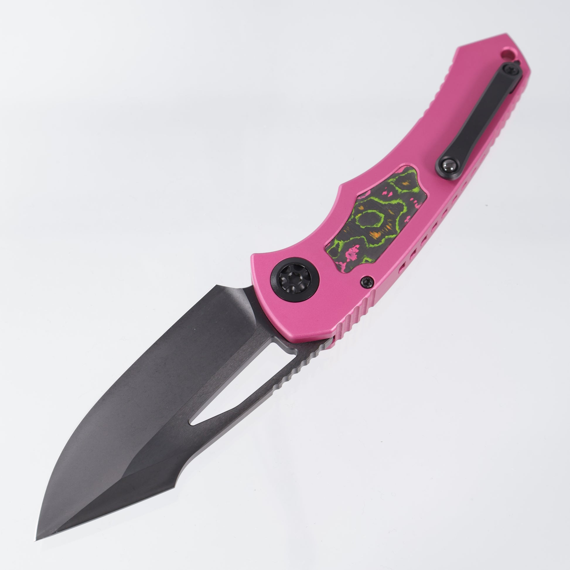 Heretic Pariah Manual Single Edge - Pink Aluminum w/ 80s Camo Carbon inlays - DLC Magnacut - H046-6A-PINK/80S - BROP Exclusive