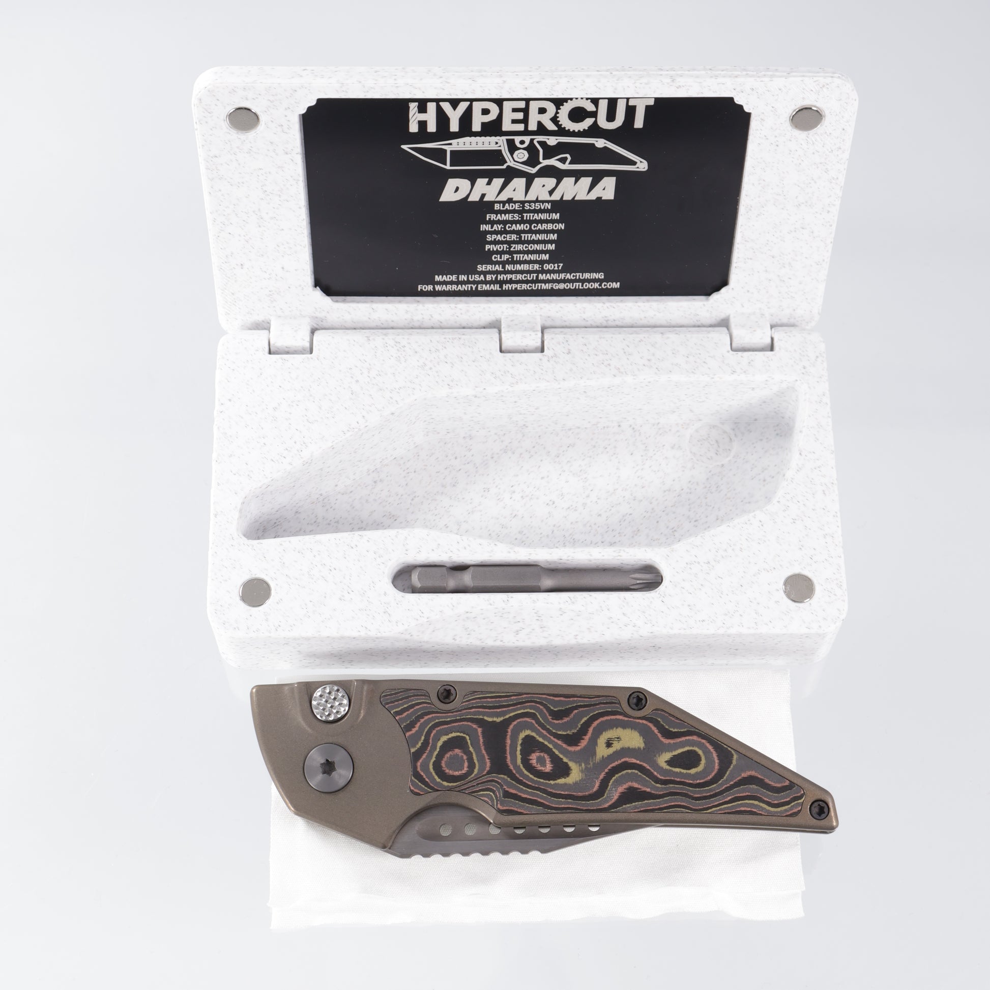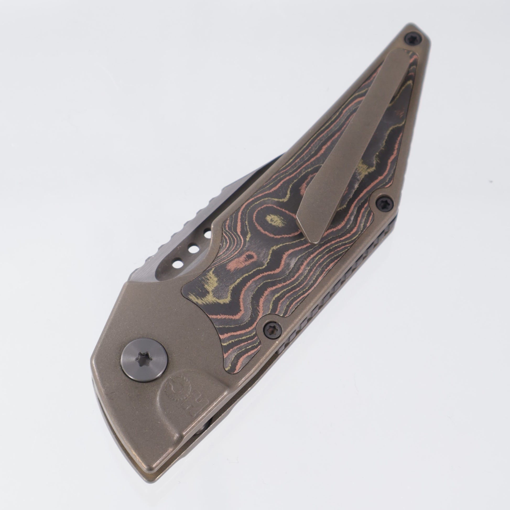 Hypercut Dharma Auto - Bronze Titanium w/ Mokume Camo Carbon Inlay - Stonewash S35VN - Zirconium Clip & Pivot - S/N: 0017