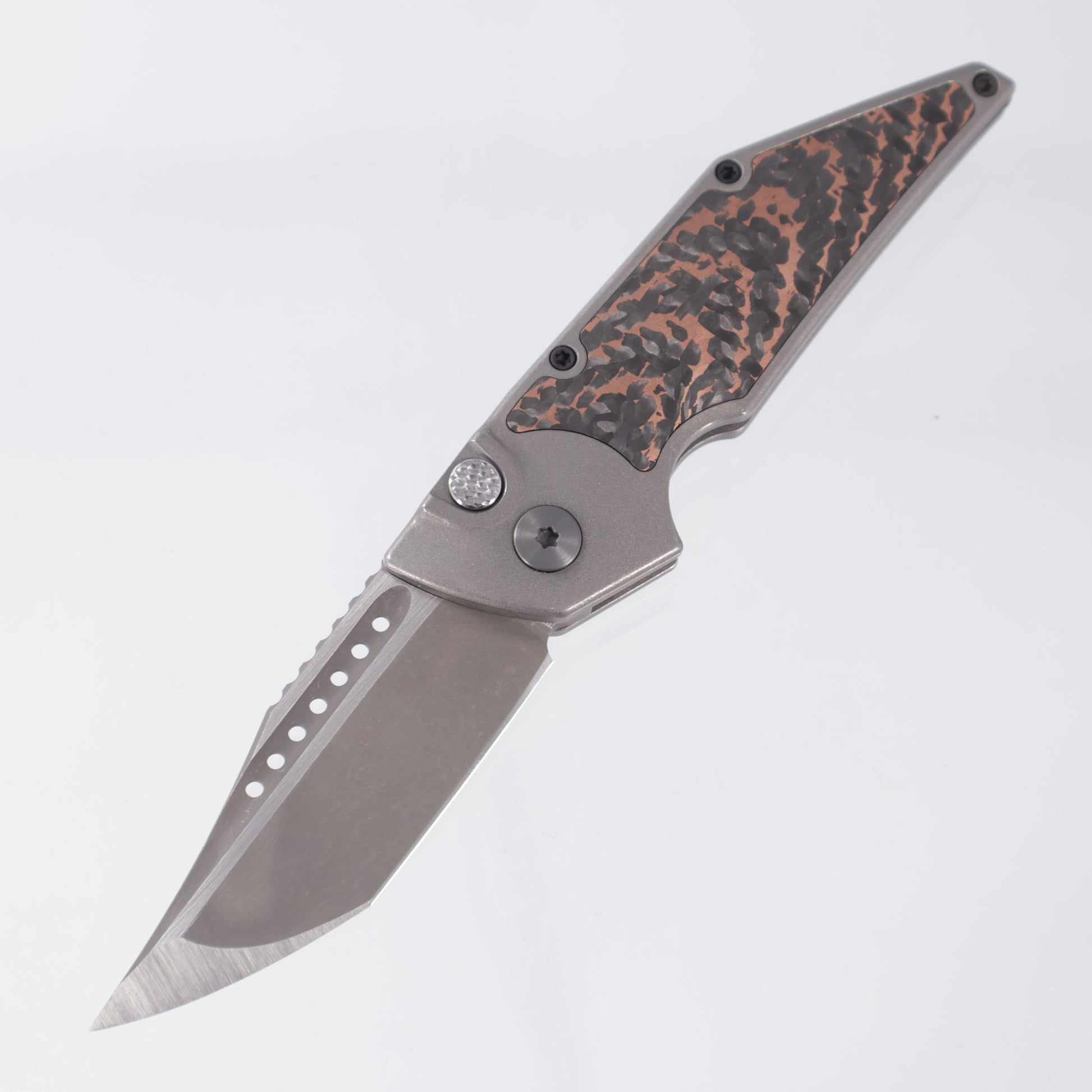 Hypercut Dharma Auto - Titanium w/ Snakeskin Fat Carbon Inlay - Stonewash S35VN - Zirconium Clip & Pivot - S/N: 0021