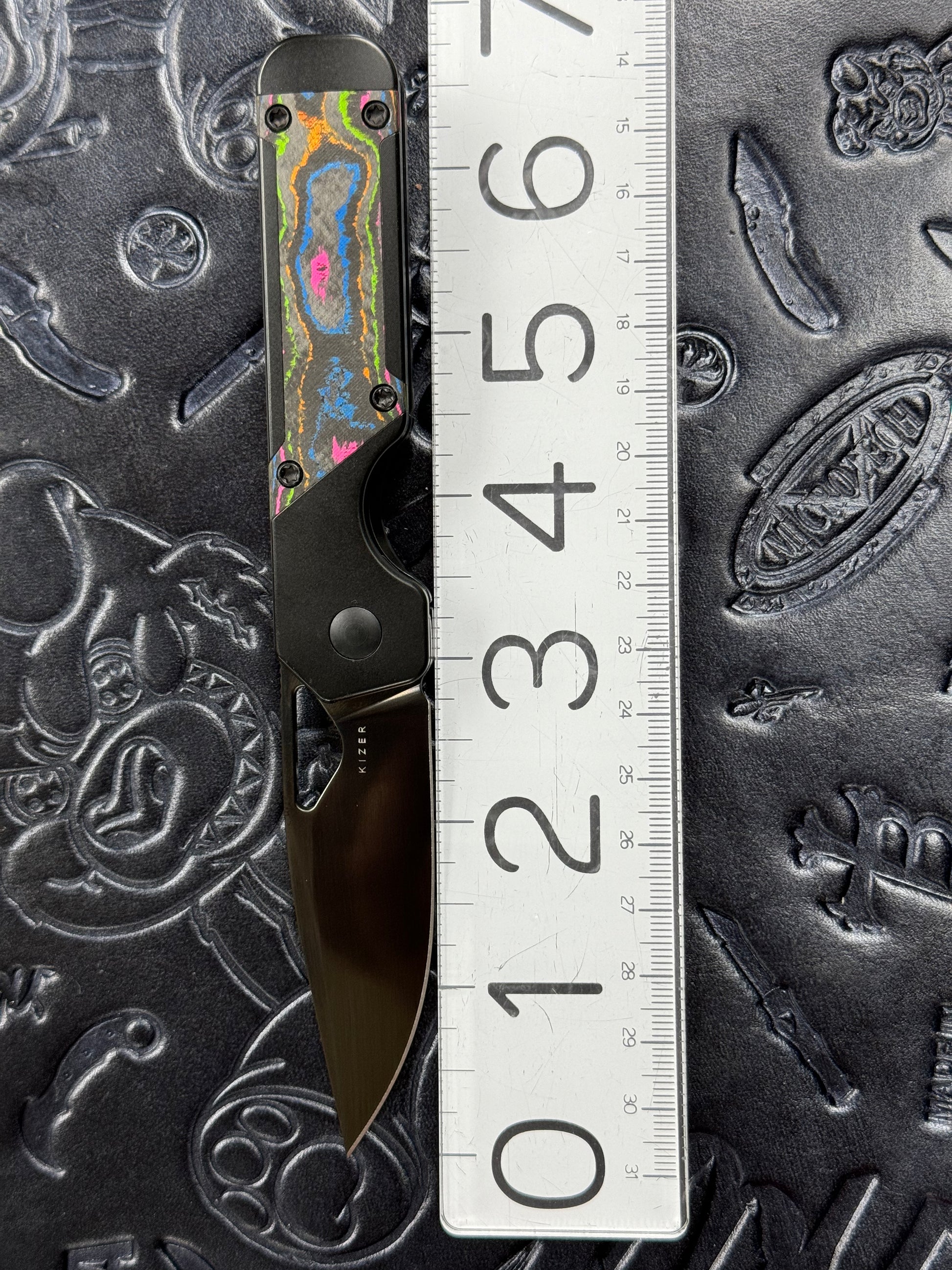 Kizer Mini Militaw - Titanium & 80s Camo Carbon - M390 Plain Edge - KI3634SA1